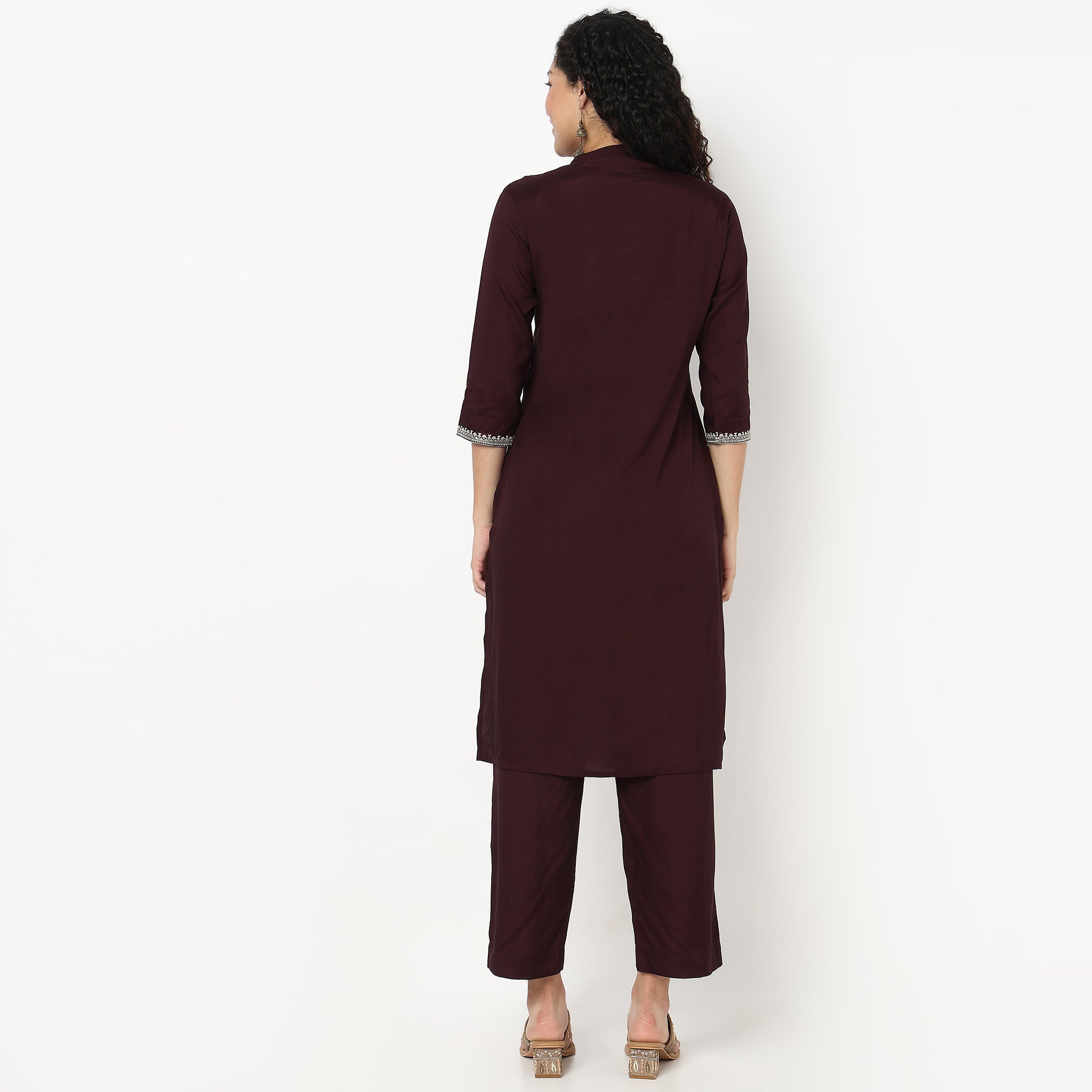 Experience the perfect blend of tradition and comfort with our Embroidered Kurta and Pant Set. Crafted from 100% viscose, this set offers a soft, breathable feel that keeps you comfortable all day long. The intricate embroidery adds a touch of elegance, making it ideal for both casual outings and festive occasions.