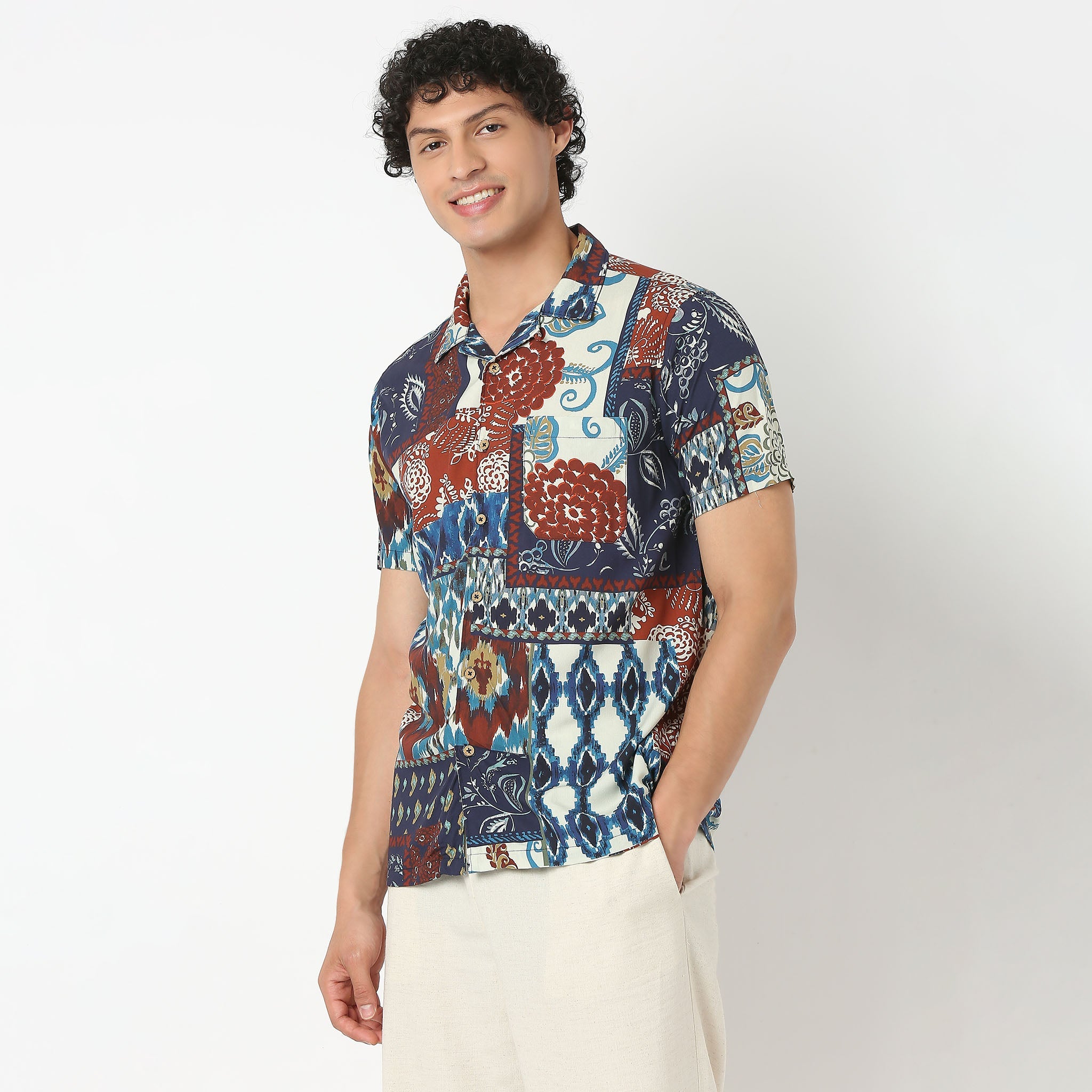 Experience the perfect blend of style and comfort with our Camp Collar Short Length Printed Shirt. Crafted from 100% cotton, this shirt offers a breathable and soft touch against your skin, making it ideal for warm weather. The vibrant printed pattern adds a dash of personality, ensuring you stand out in any crowd.