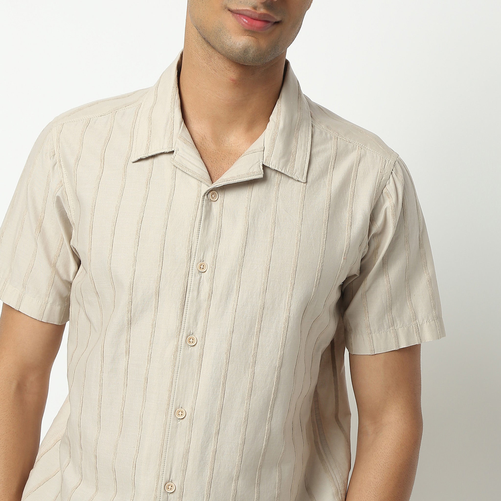 Camp Collar Half Sleeve Striped Structured Solid Bae Shirt