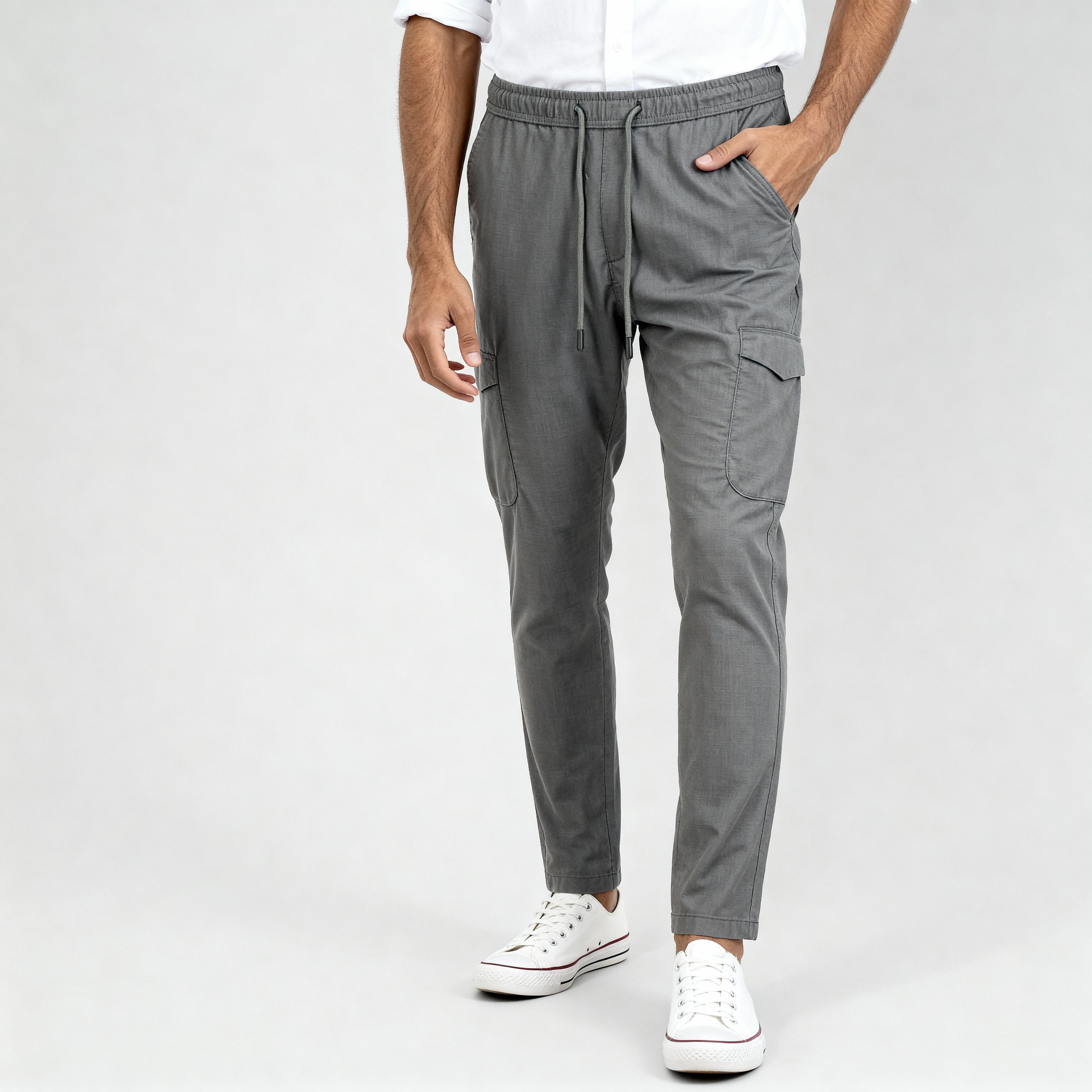 - Equipped with two pockets, these cargos combine practicality with sleek design for everyday convenience.