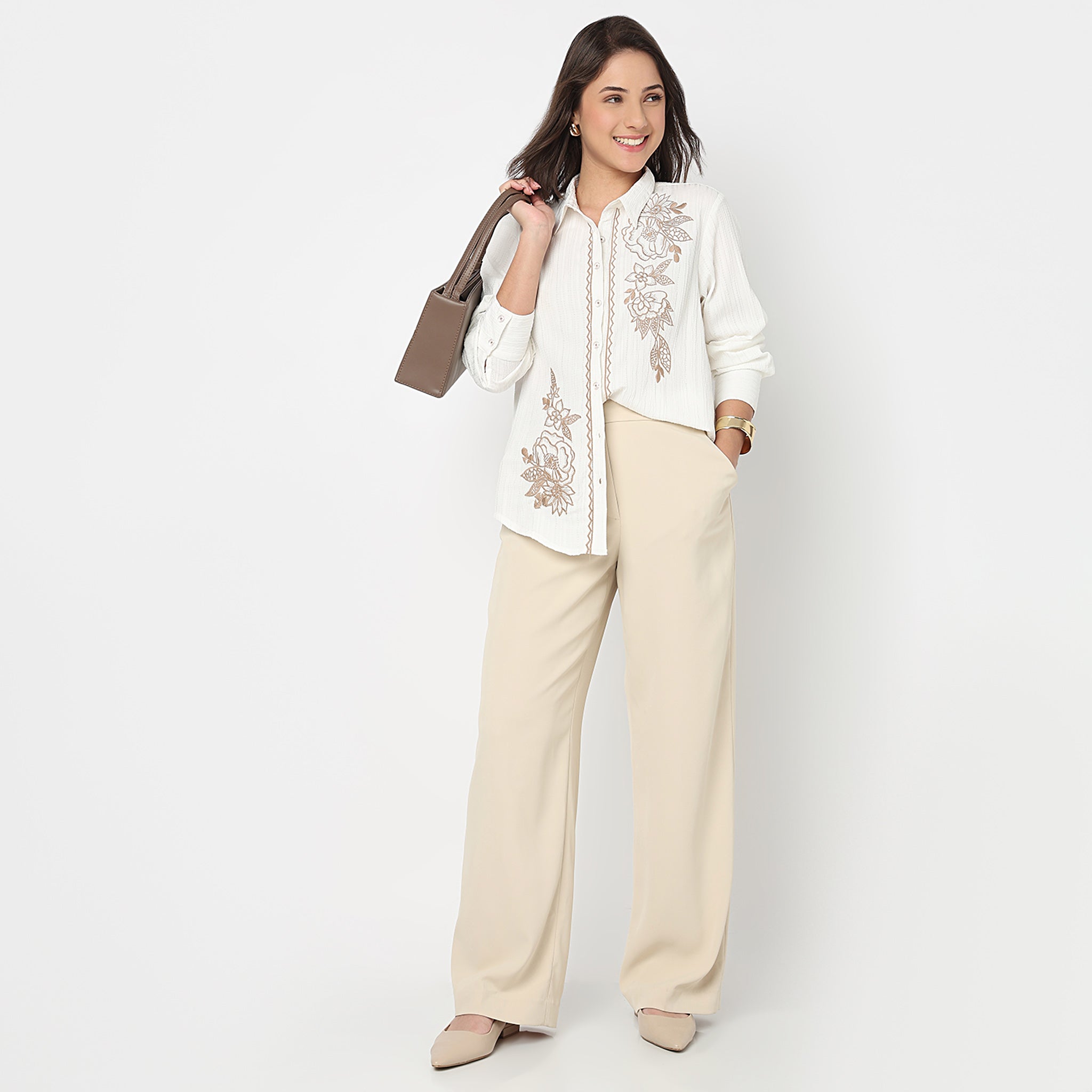 Elevate your wardrobe with our Embroidered Shirt, designed for women who appreciate style and comfort. Crafted from high-quality woven polyester, this shirt combines elegance with everyday wearability.