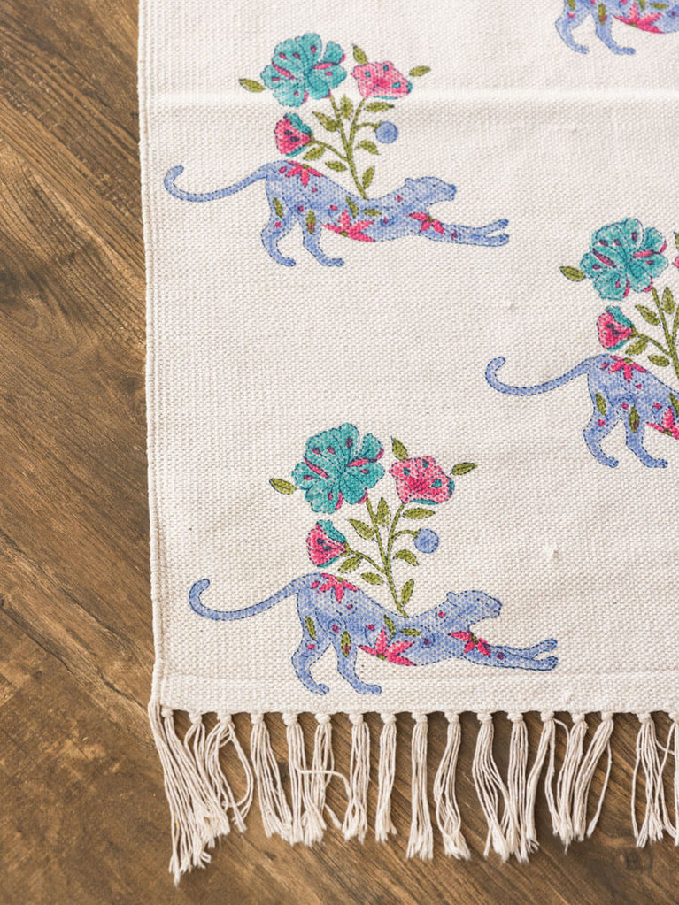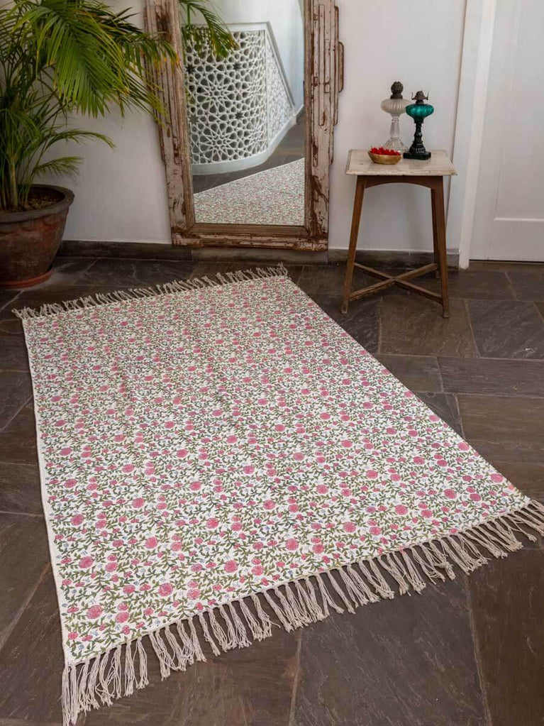 Hibiscus Block Printed Cotton Dhurrie Rug