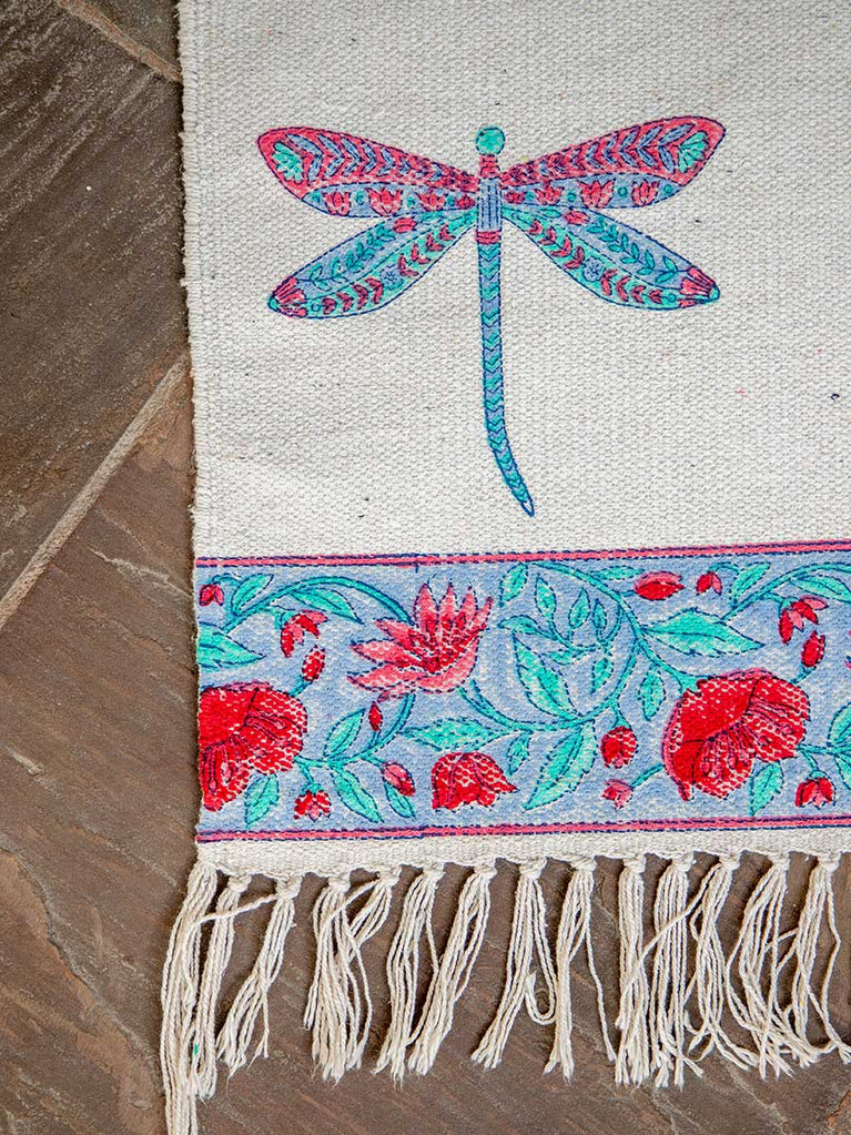 Dragonfly Block Printed Cotton Dhurrie Rug