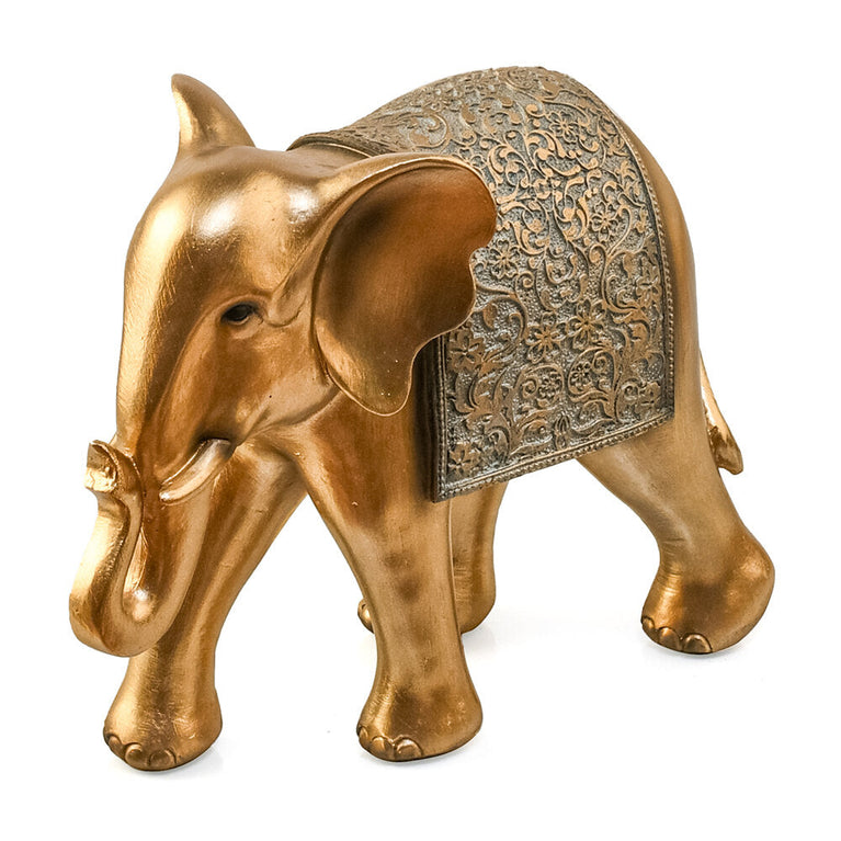 Curl Trunk Elephant Decorative Polyresin Showpiece (Grey & Gold)