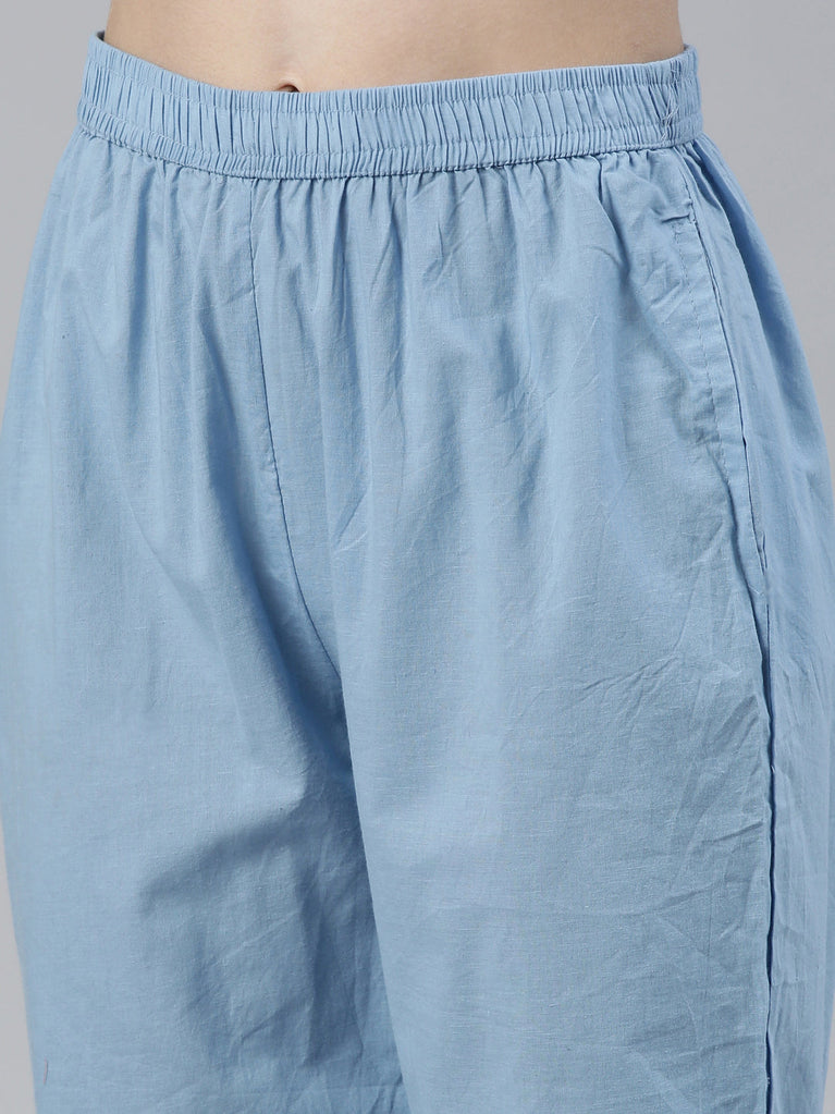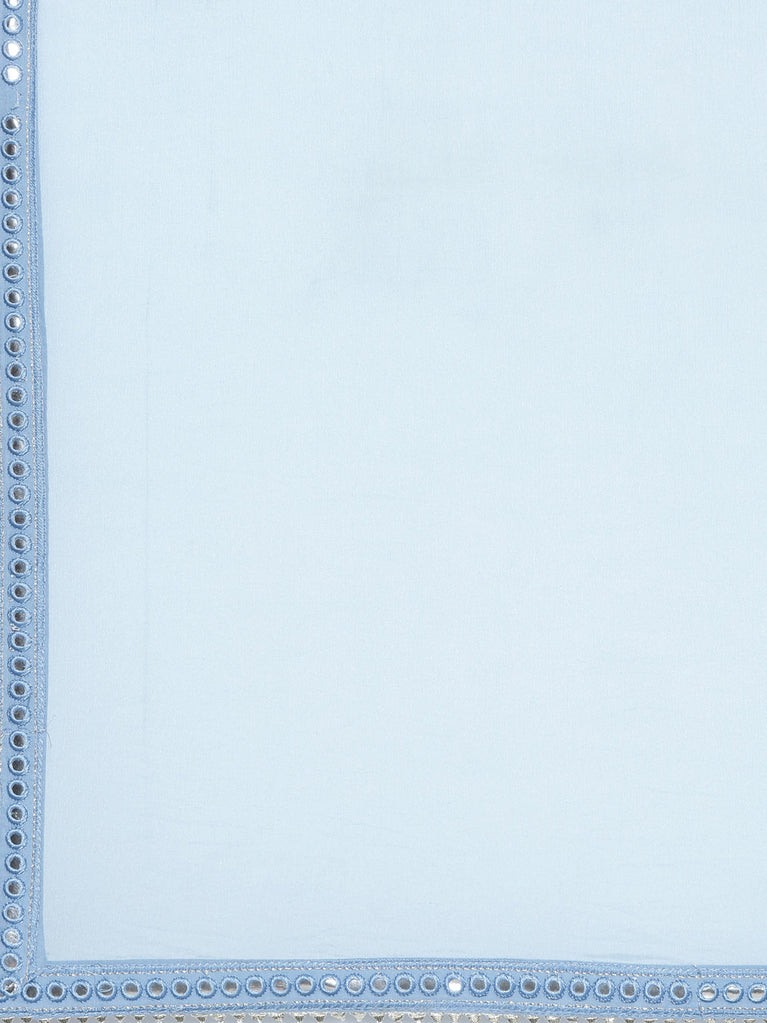 Neeru's Blue Regular Straight Embroidered Kurta And Trousers With Dupatta