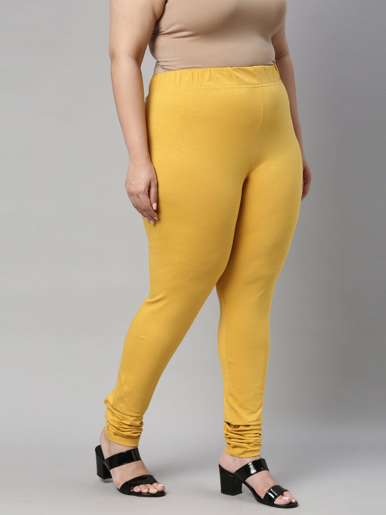 Go chic with a pair of Golden Yellow Solid Churidar Leggings. Made from high quality cotton, it has a elasticised waistband & gathers at the hemline.
