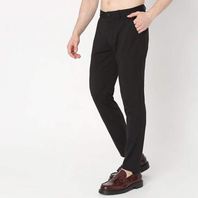 These modern nerd theme, solid pattern regular fit chinos has ankle length, mid rise waist. Made from polyester viscose spandex, it is soft and comfortable to wear.