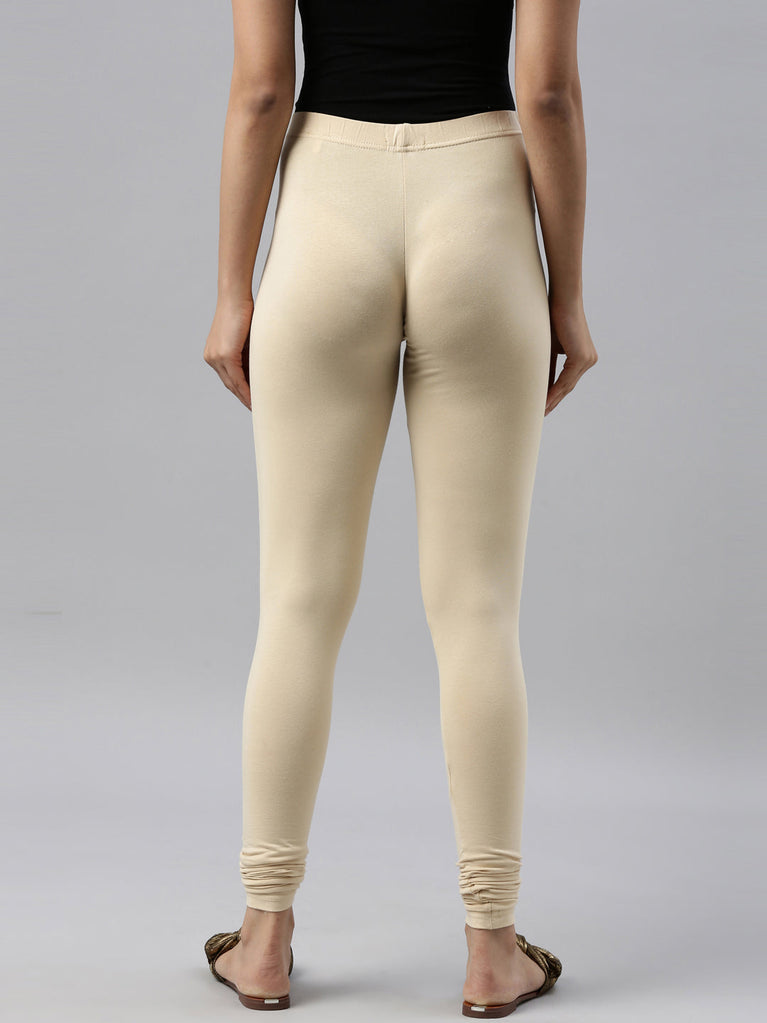 Go chic with a pair of Cream Solid Churidar Leggings. Made from high quality cotton, it has a elasticised waistband & gathers at the hemline.