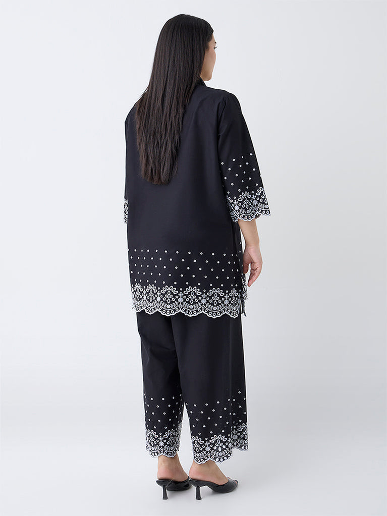Diza Black Schiffli Embroidered Cotton Palazzos