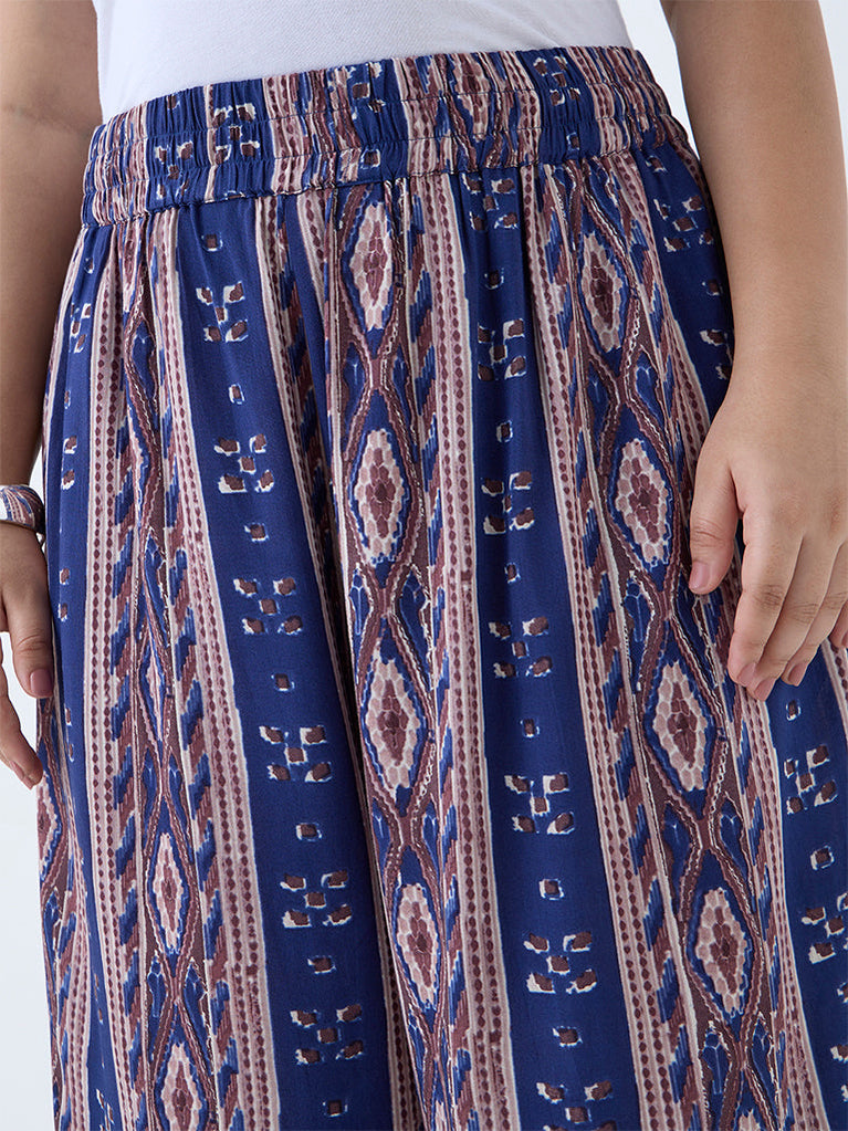 Festive comfort finds its form in these indigo palazzos from Diza. Decorated with floral motifs, they’re crafted from a breathable fabric that moves with you through celebrations. The relaxed silhouette, elasticated waistband, and side pockets keep the look refined yet functional, making them a versatile choice for pairing with embroidered or printed kurtas.