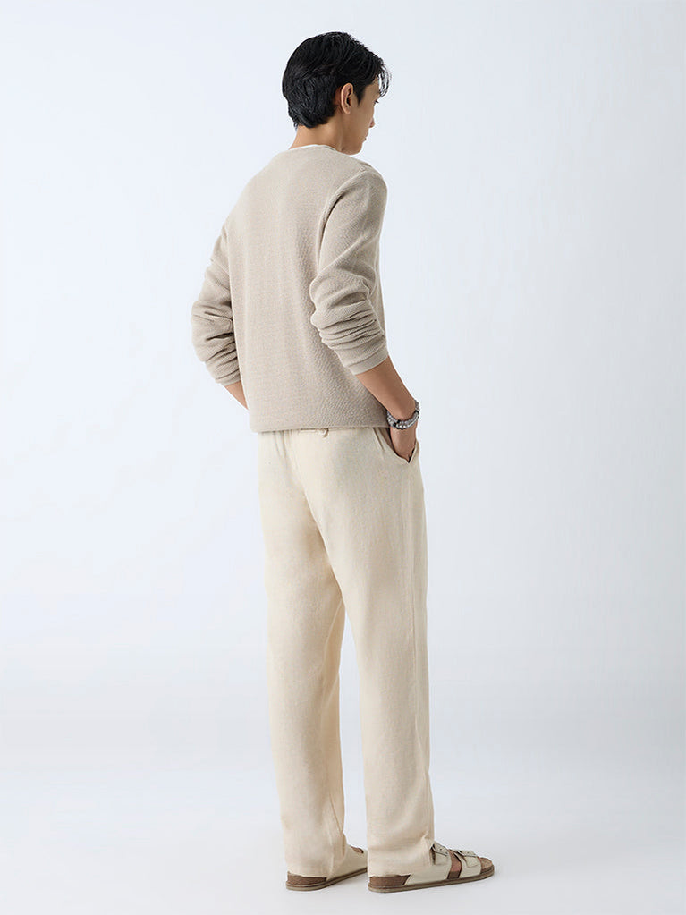 ETA Beige Textured Relaxed-Fit Cotton Sweater