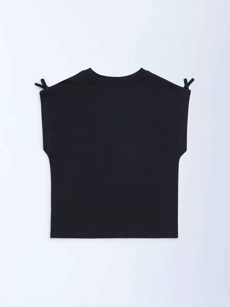HOP Kids Girls Black Embellished Cotton T-Shirt