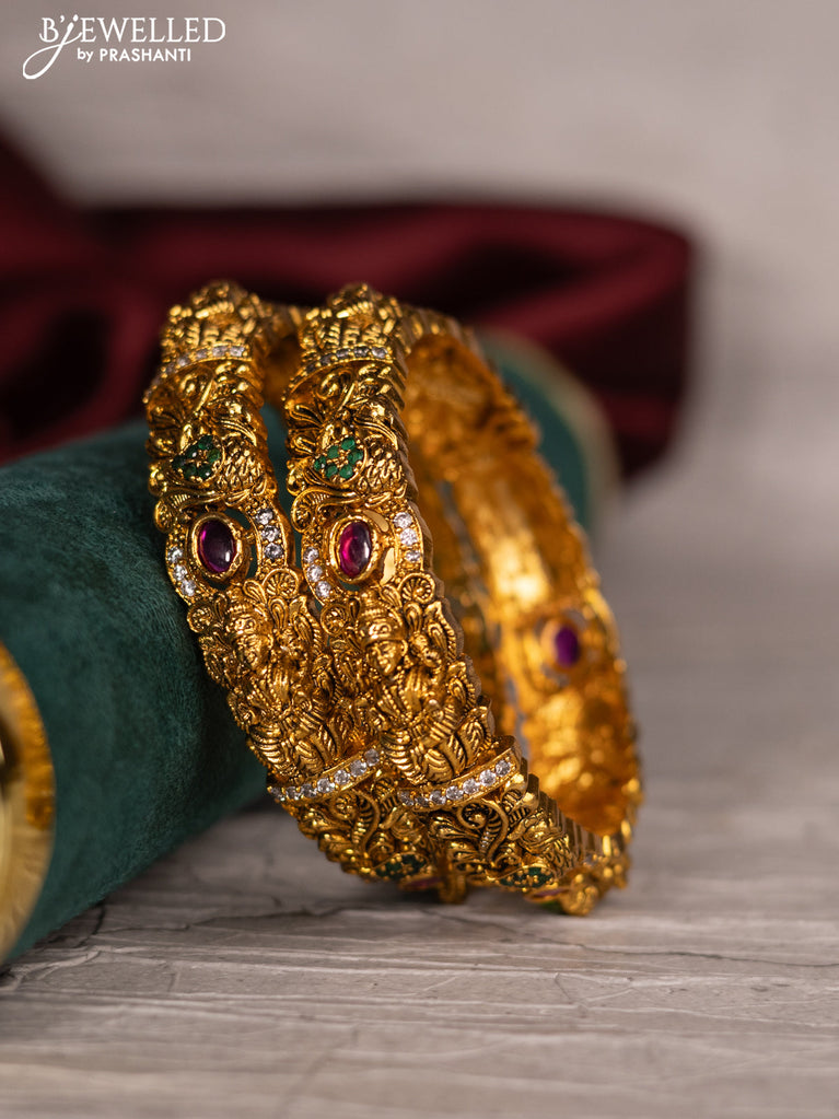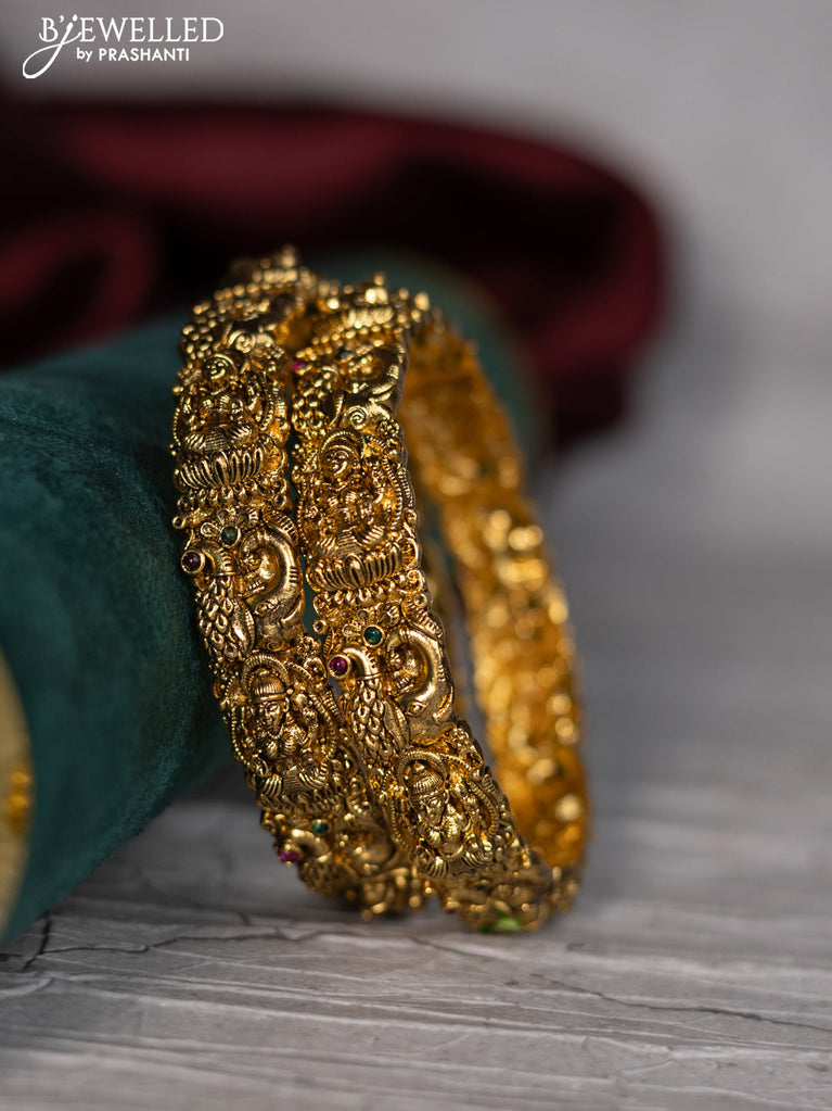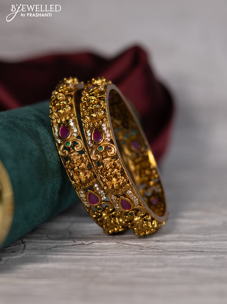 Antique bangle lakshmi and floral design with cz and kemp stones