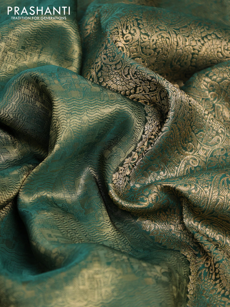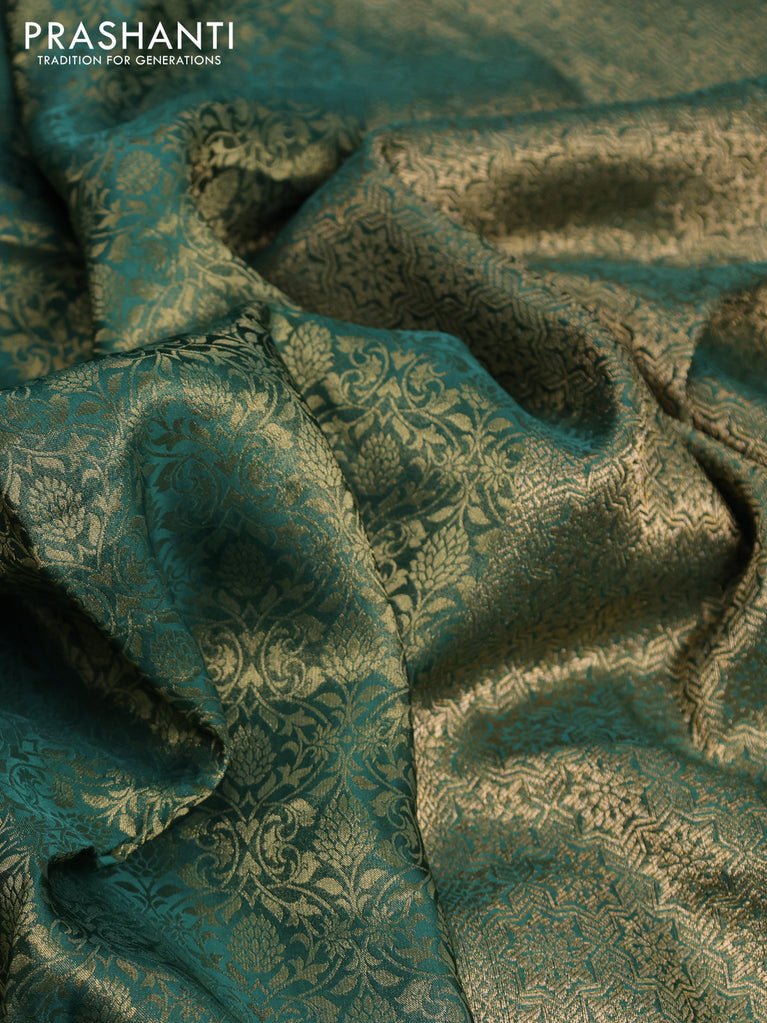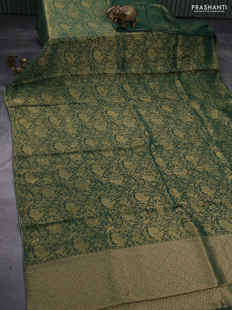 Banarasi semi crepe saree green with allover zari woven brocade weaves and lace work border