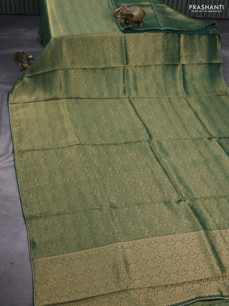 Banarasi semi crepe saree mehendi green with allover thread & zari woven brocade weaves and woven border