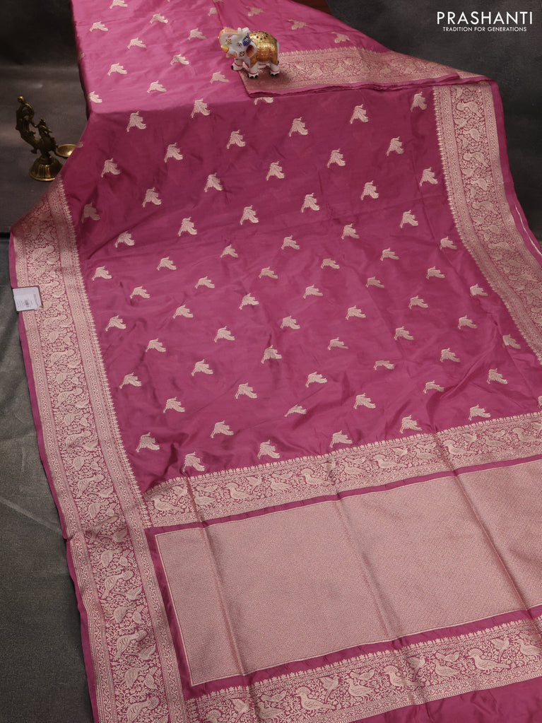 Banarasi semi katan saree mauve pink with zari woven buttas and zari woven border
