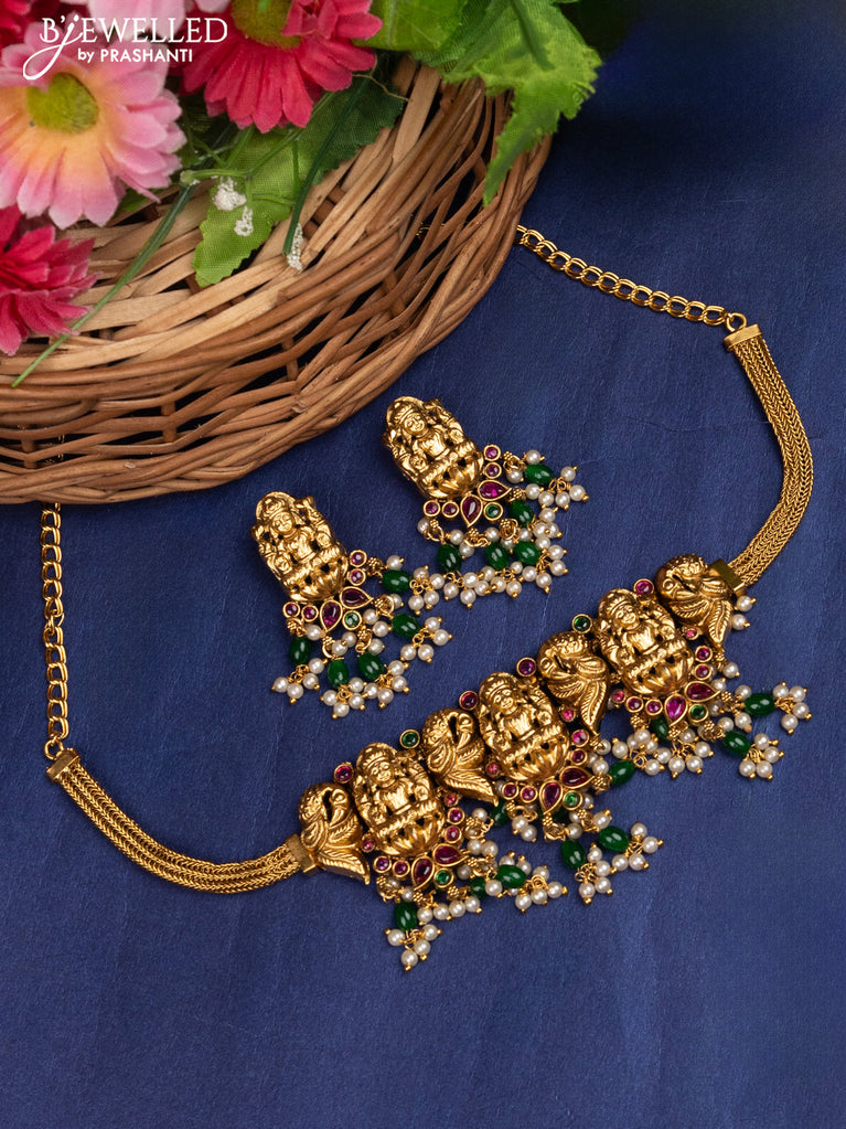 Antique choker lakshmi design with kemp & cz stones pearl hangings without earrings
