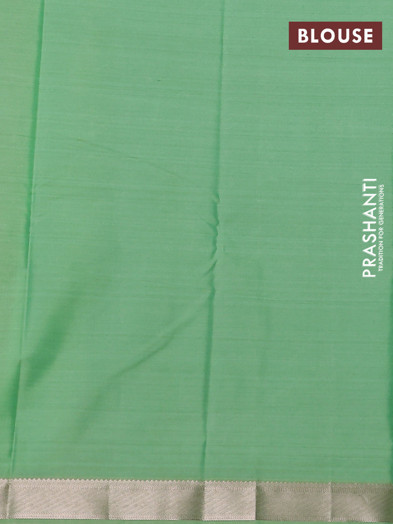 Bangalori semi silk saree light gree and green with allover elephant butta ikat weaves and zari woven border