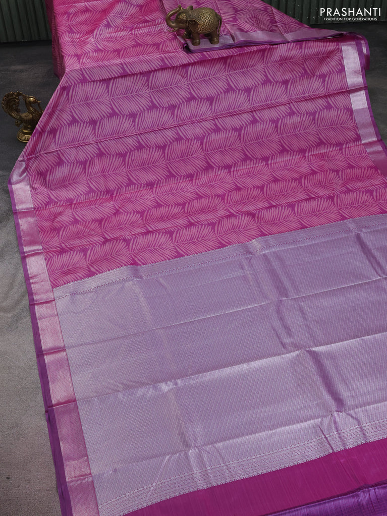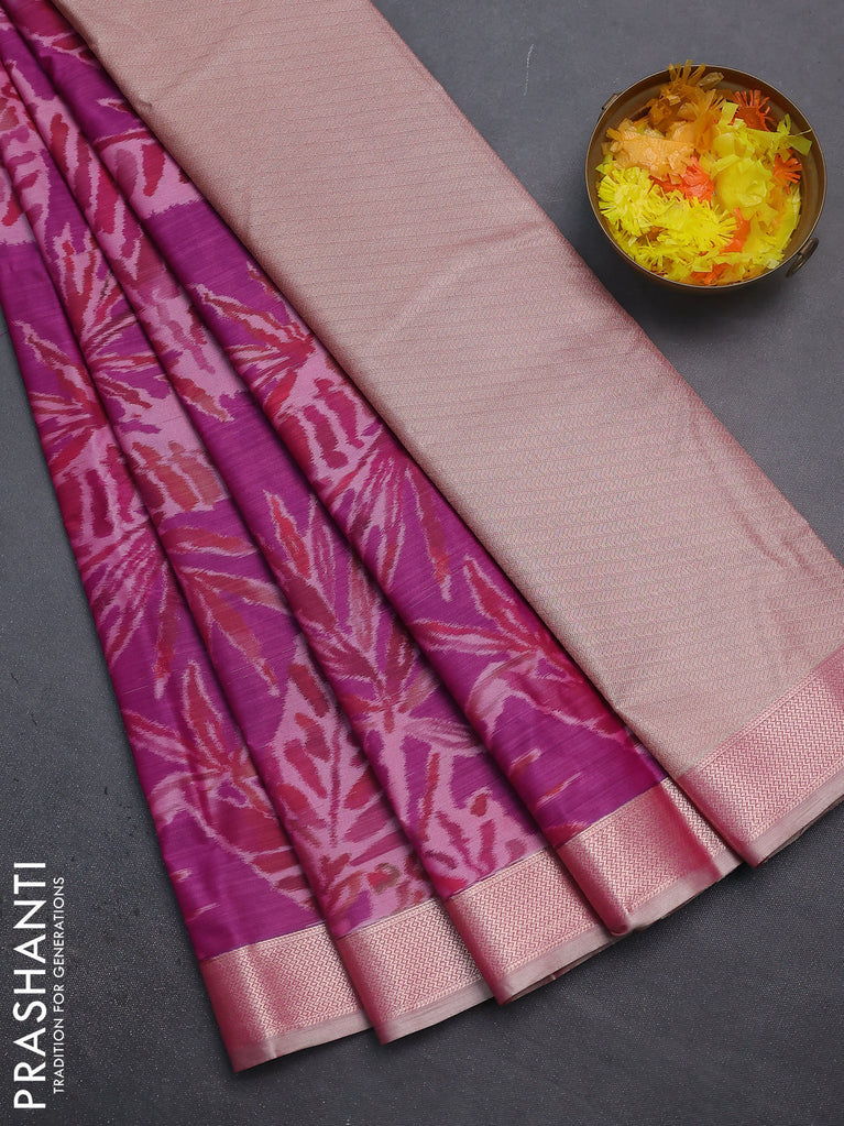 Bangalori semi silk saree purple with allover ikat weaves and zari woven border