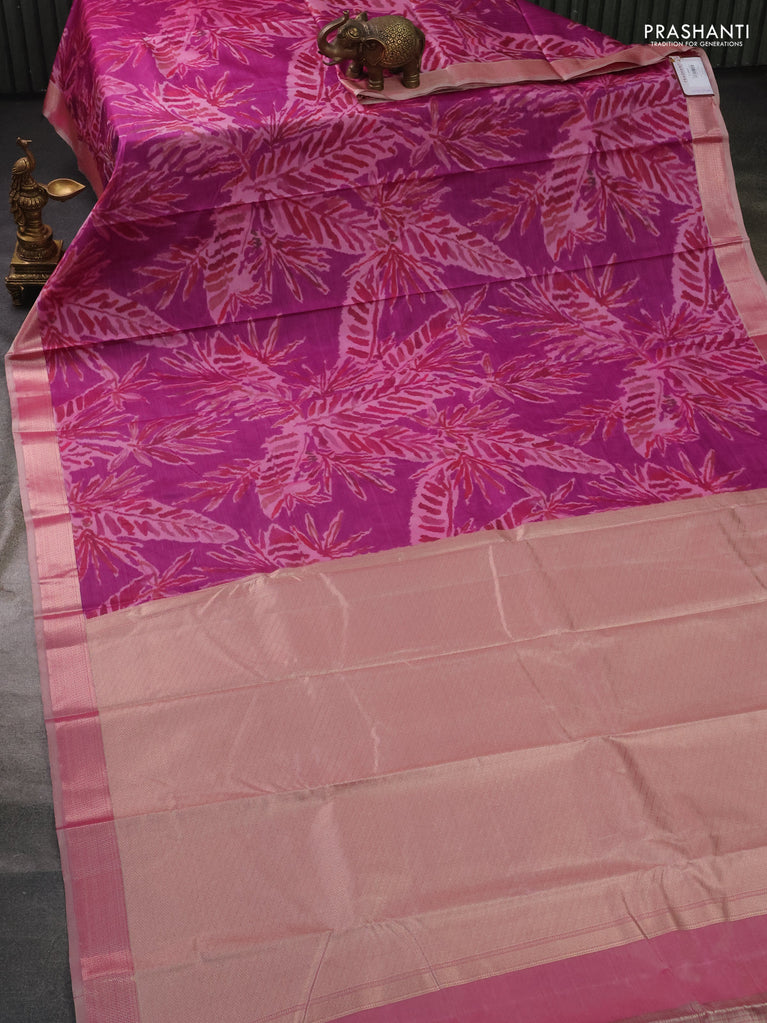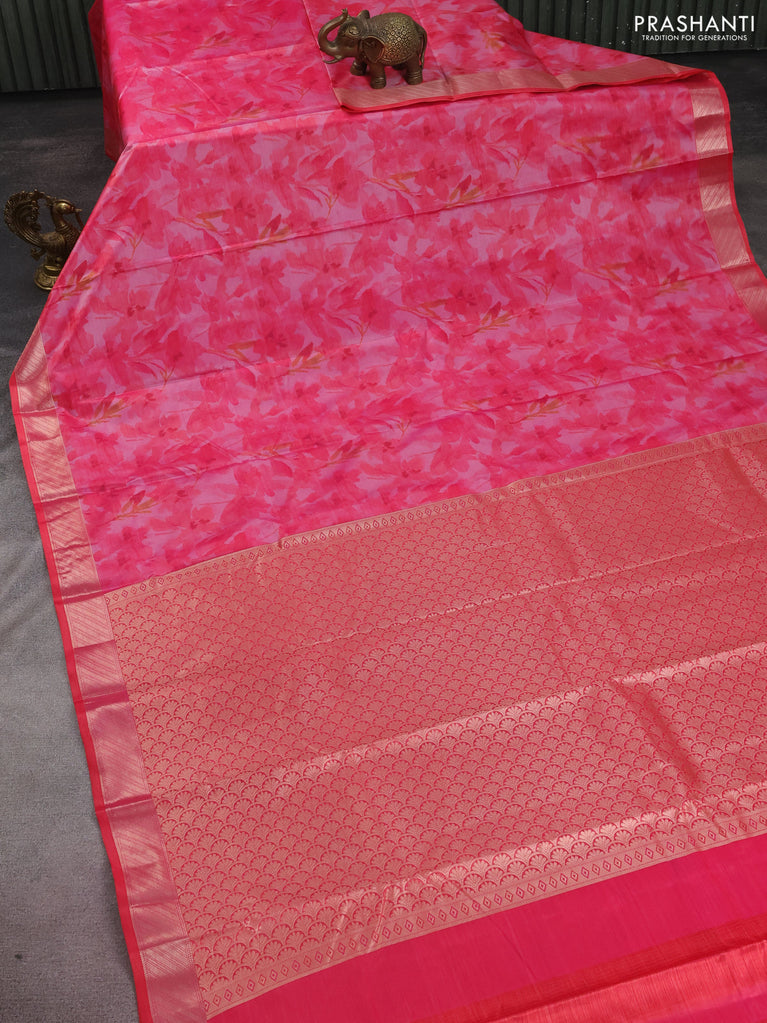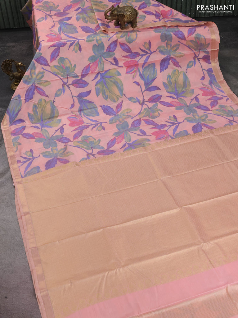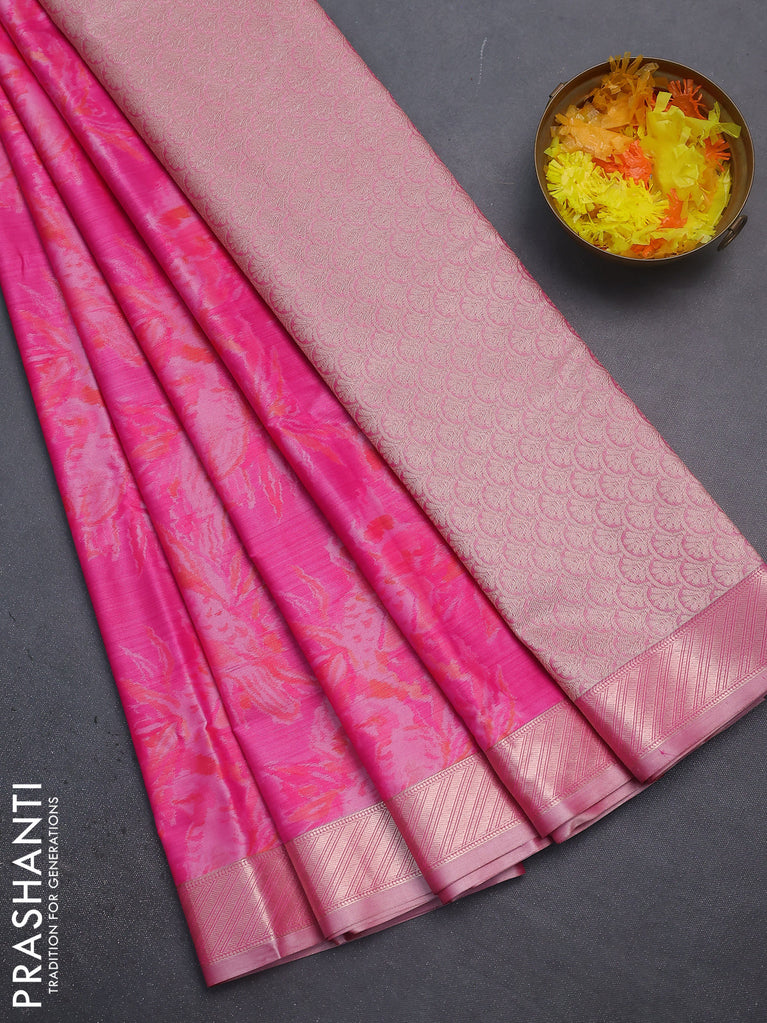 Bangalori semi silk saree pink with floral design ikat weaves and zari woven border