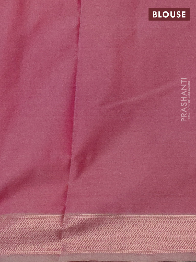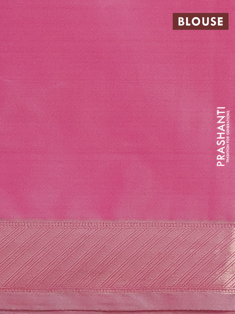 Bangalori semi silk saree pink with allover ikat butta weaves and zari woven border