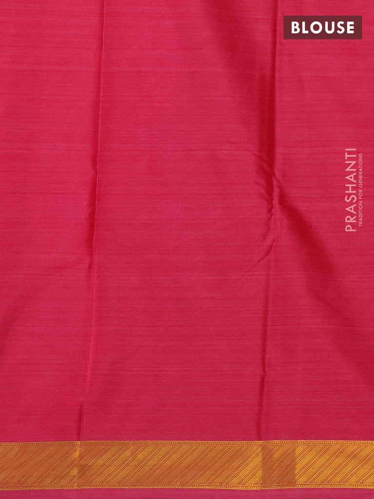 Bangalori semi silk saree rust shade pink and mehendi green with allover ikat weaves and zari woven border