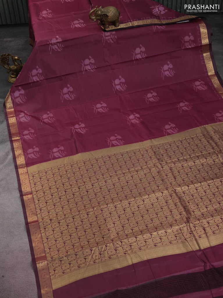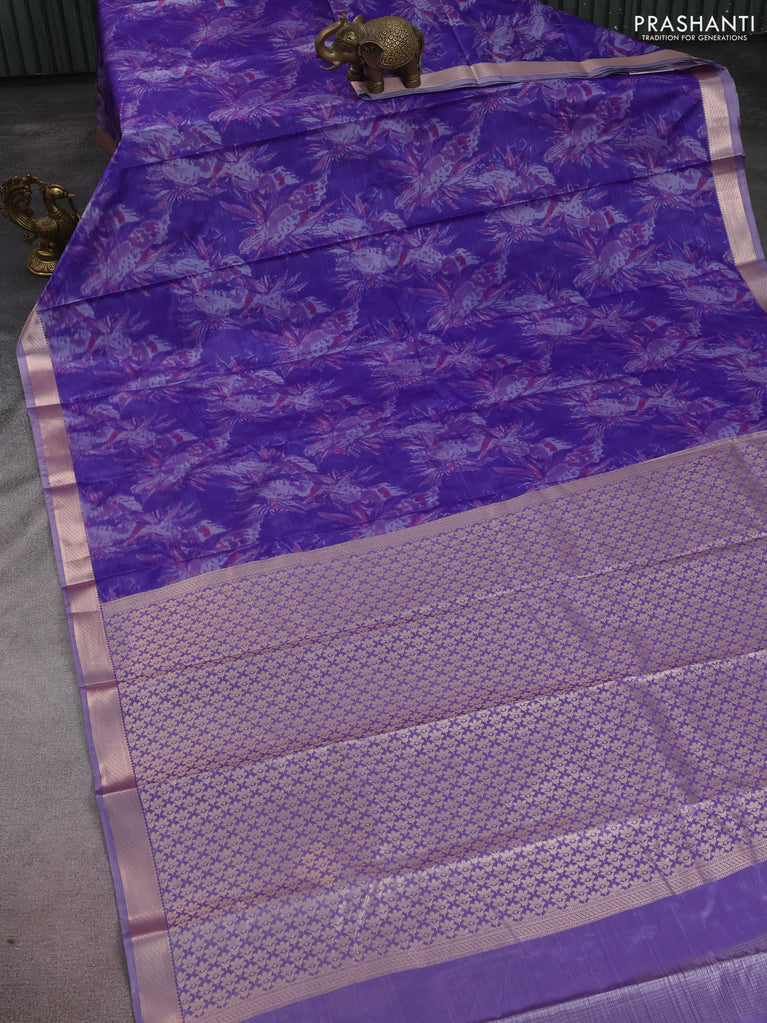 Bangalori semi silk saree violet with allover ikat weaves and zari woven border