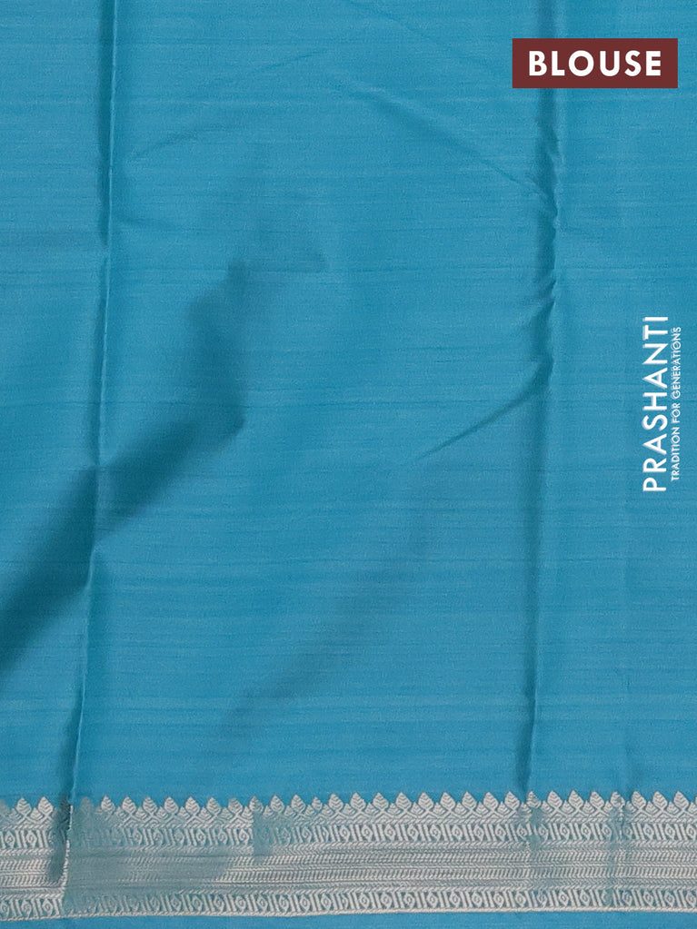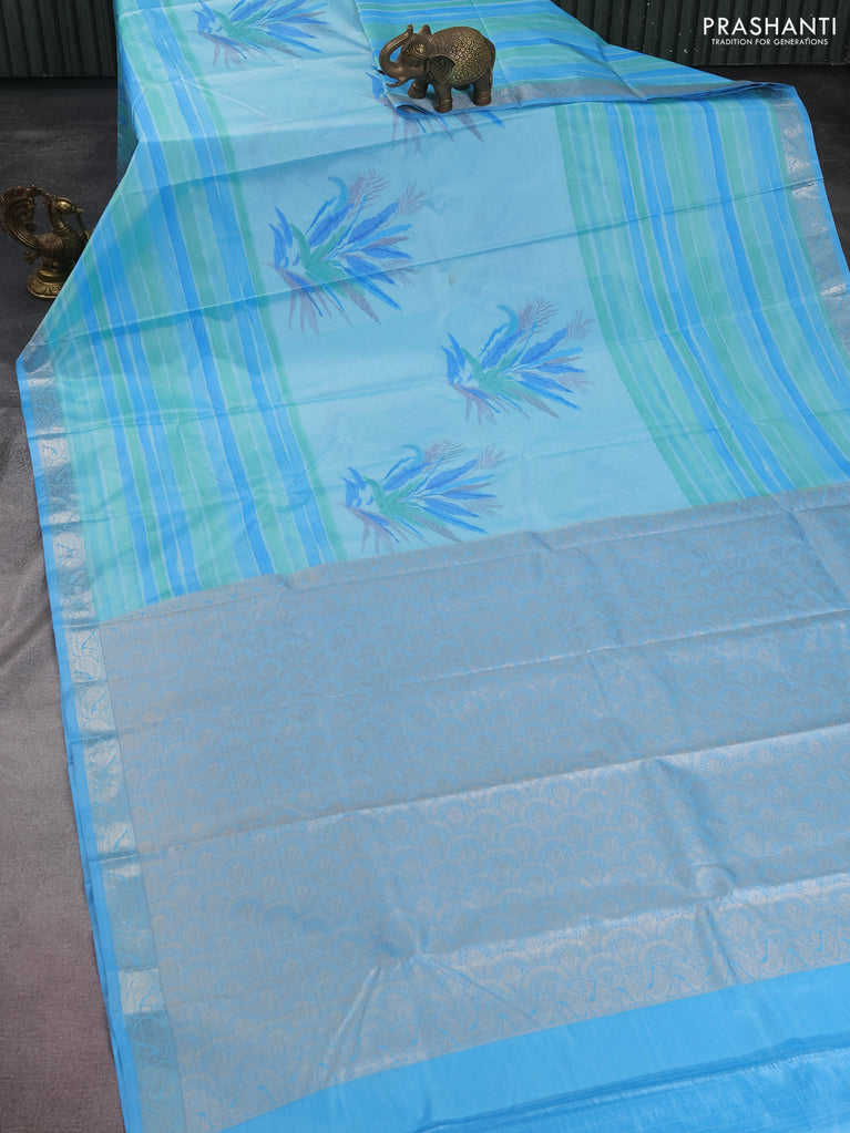 Bangalori semi silk saree teal blue and light blue with allover ikat weaves and zari woven border