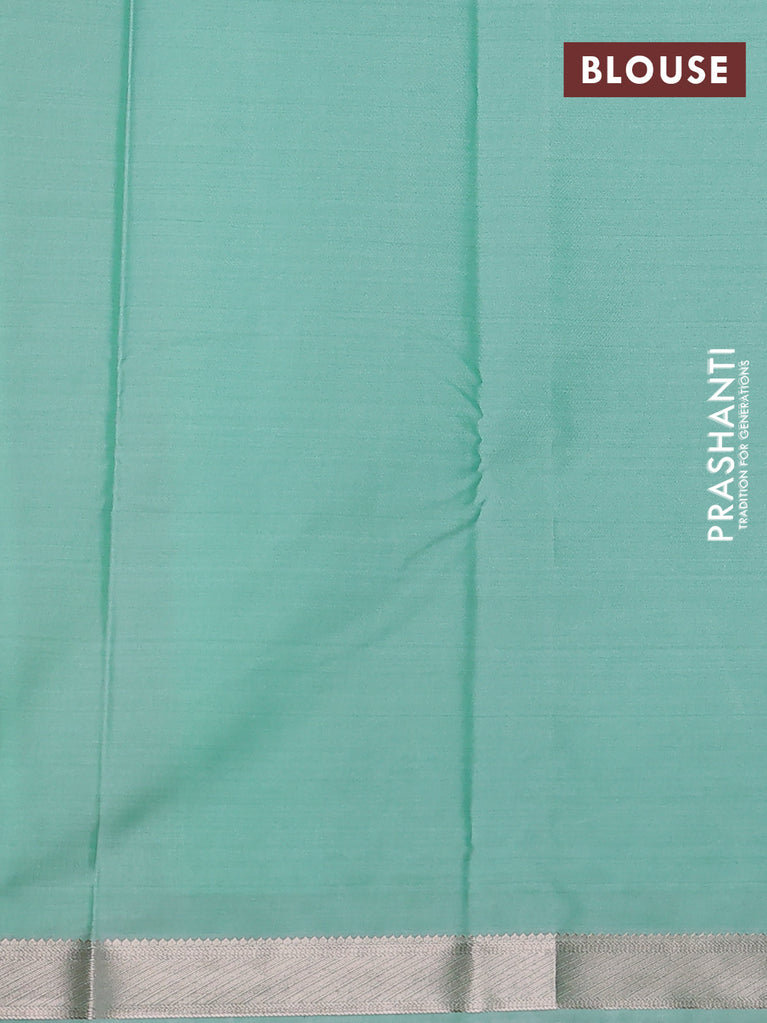 Bangalori semi silk saree teal green shade and green with allover elephant butta ikat weaves and zari woven border