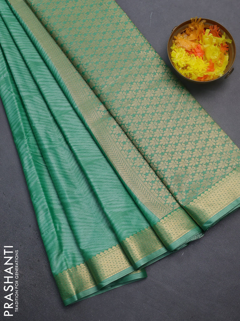 Bangalori semi silk saree teal green and light green shade with allover ikat butta weaves and zari woven border