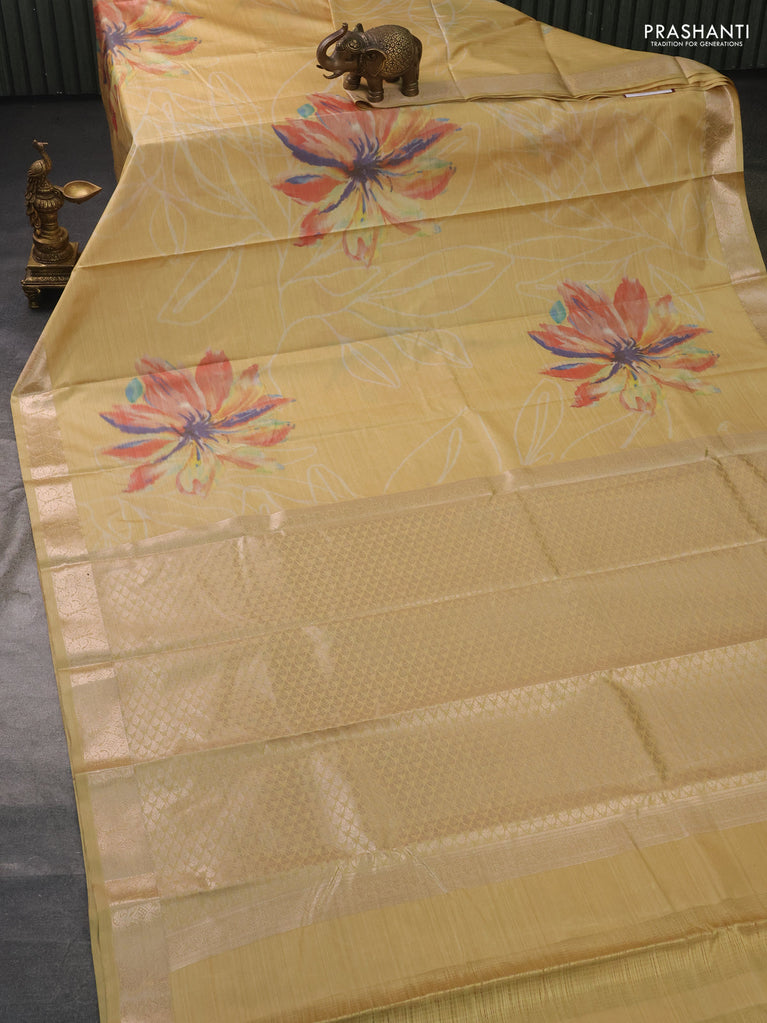 Bangalori semi silk saree sandal with allover ikat weaves and zari woven border