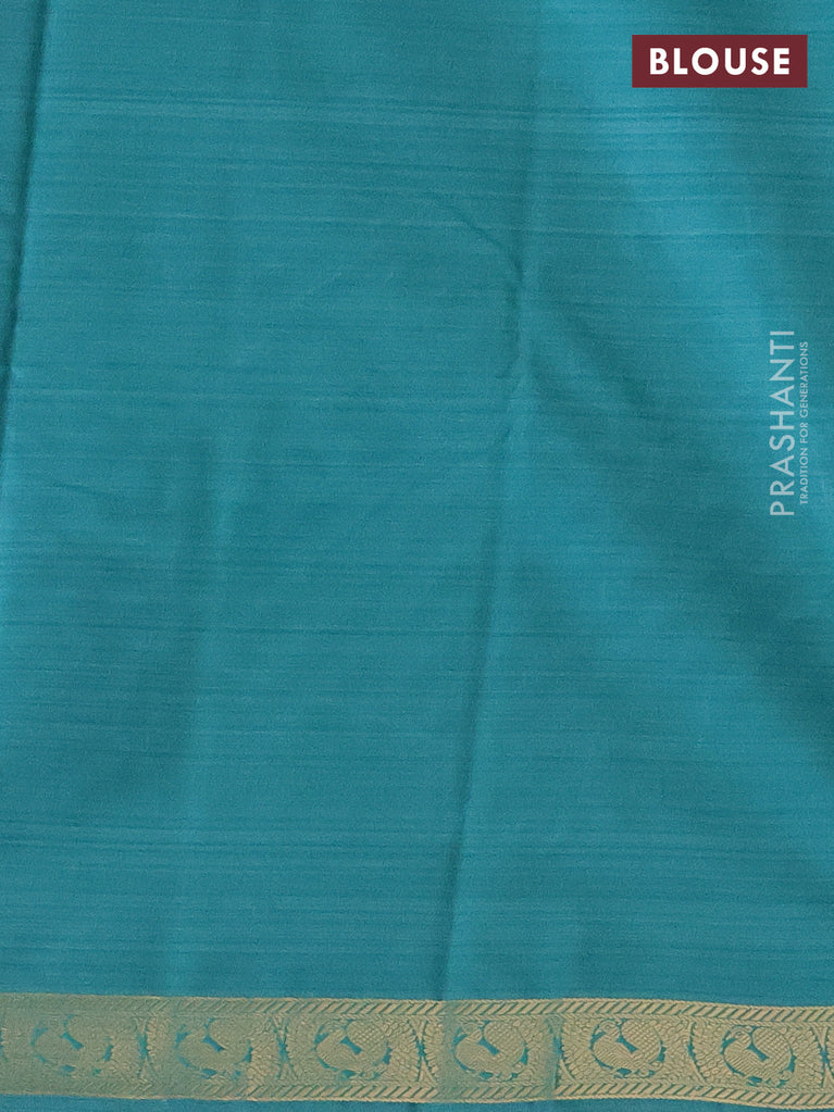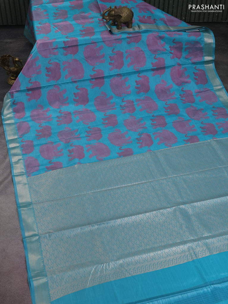 Bangalori semi silk saree teal blue with allover elephant ikat butta weaves and zari woven border