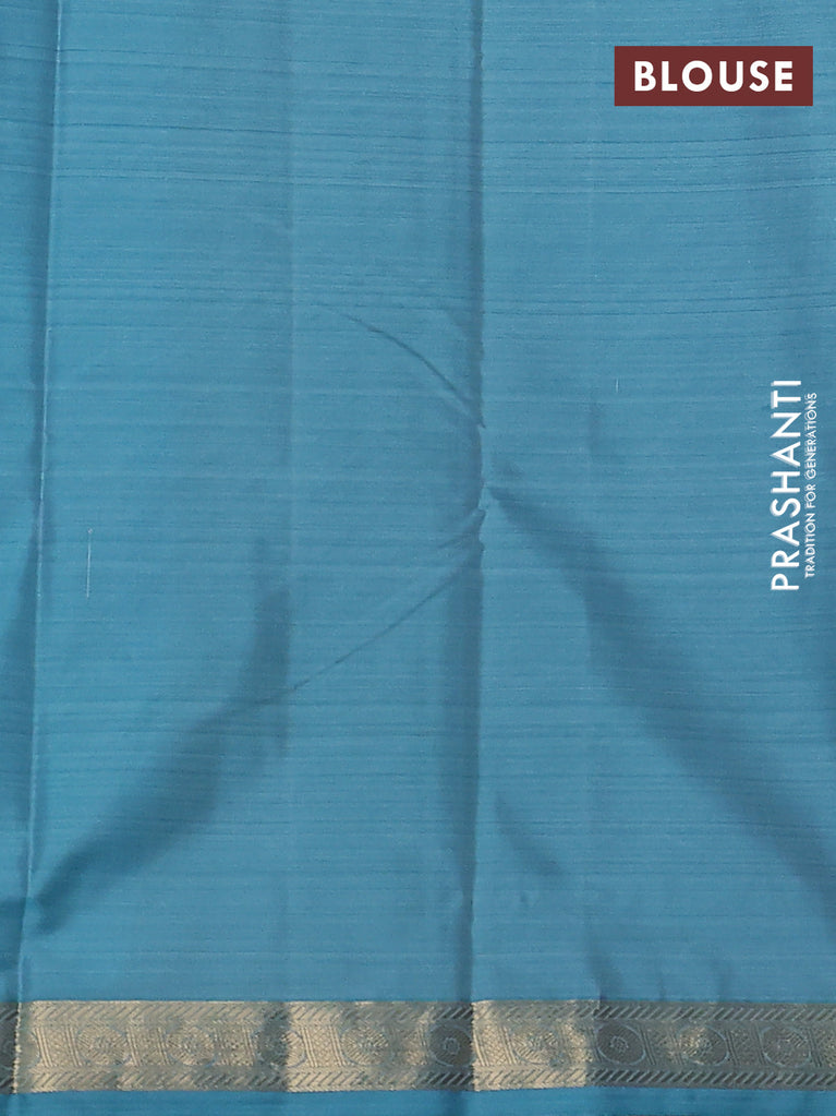 Bangalori semi silk saree teal blue and blue with allover ikat weaves and zari woven border