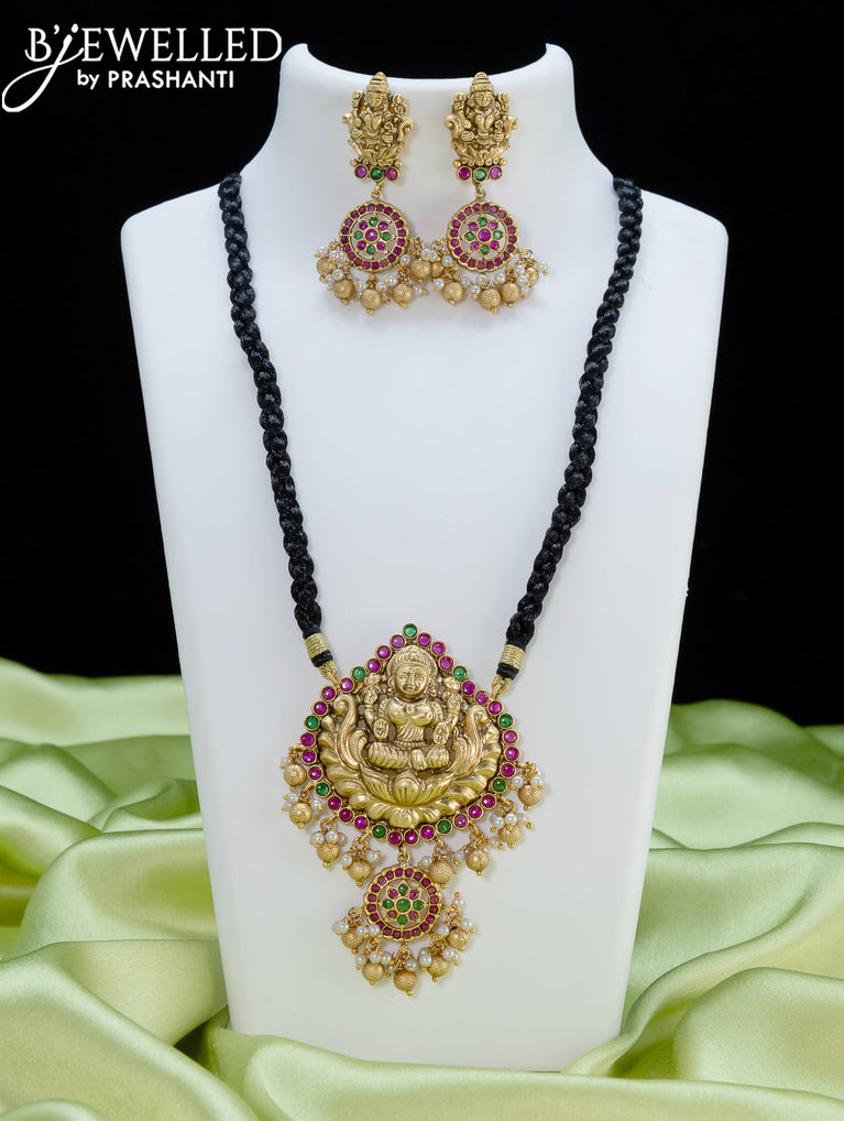 Black thread necklace lakshmi design with kemp stones and pearl & beads hanging