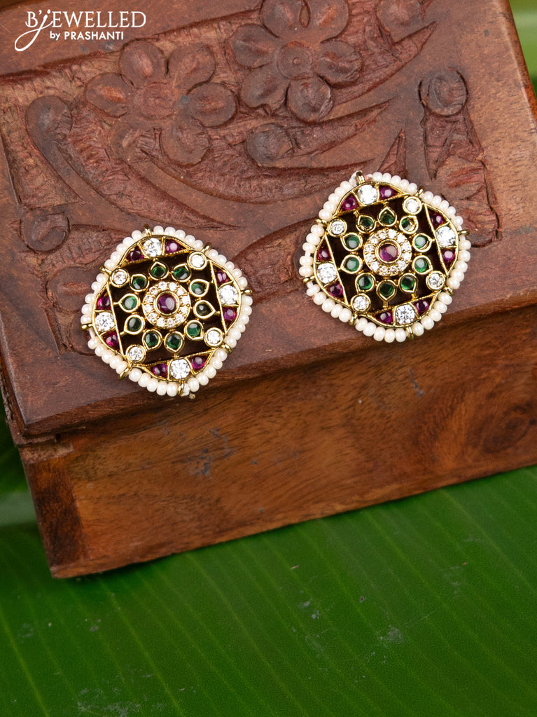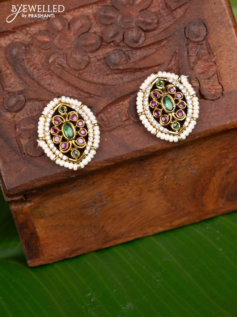 Antique earing lakshmi design with kemp & cz stones and pearl jhumka hangings