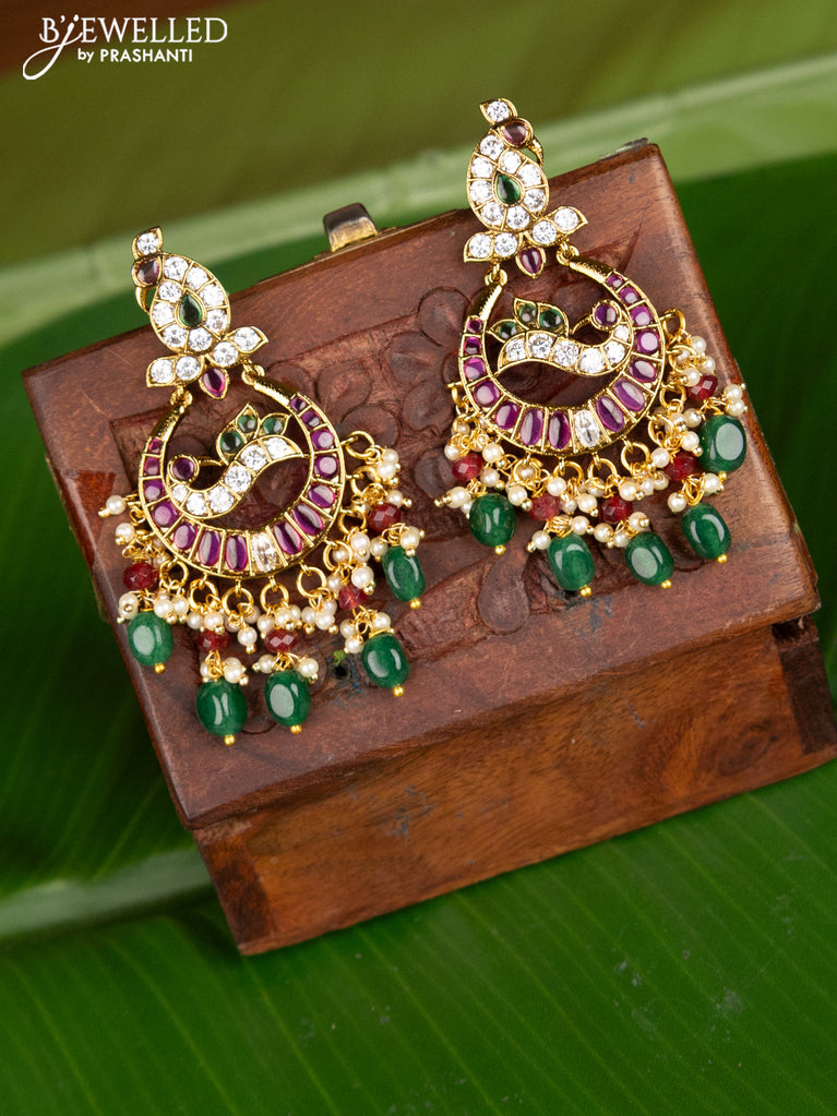 Antique earing peacock design with kemp & cz stones and pearl hangings