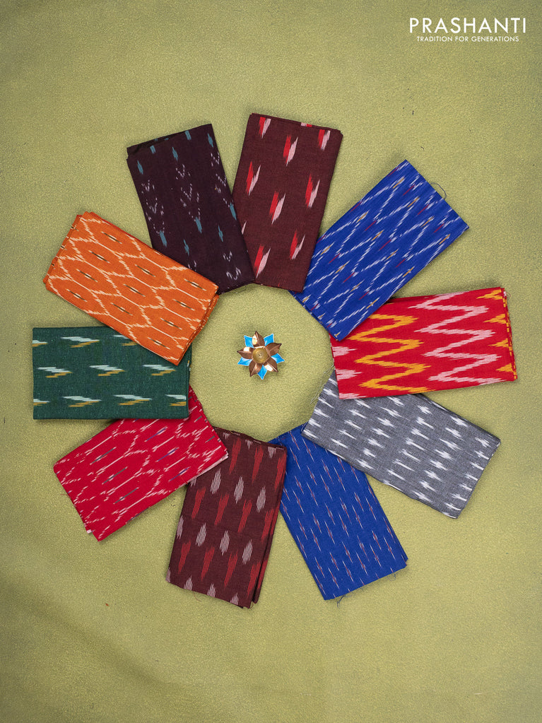 Ikat cotton blouse bits multi colour and multi design Pack of 10