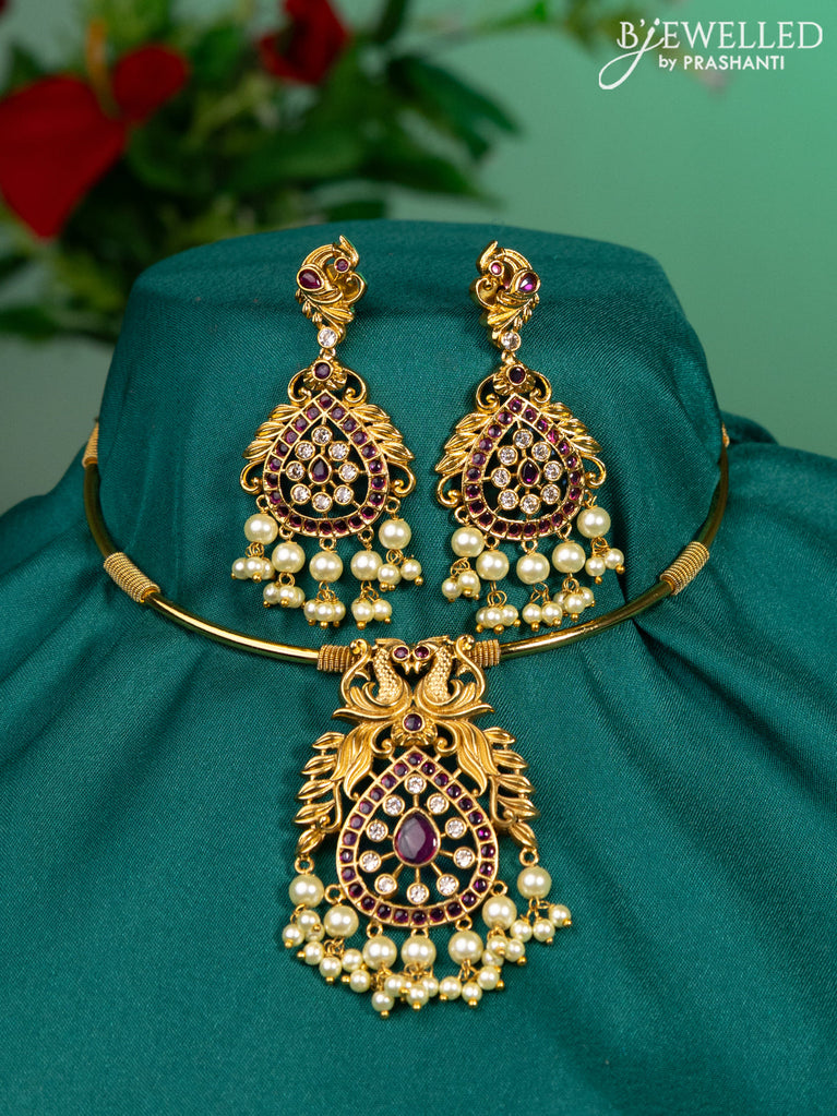 Antique ring type choker with ruby & cz stones and pearl hangings