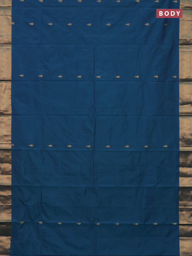 Arani semi silk saree dual shade of teal and green with zari woven buttas and zari woven butta border