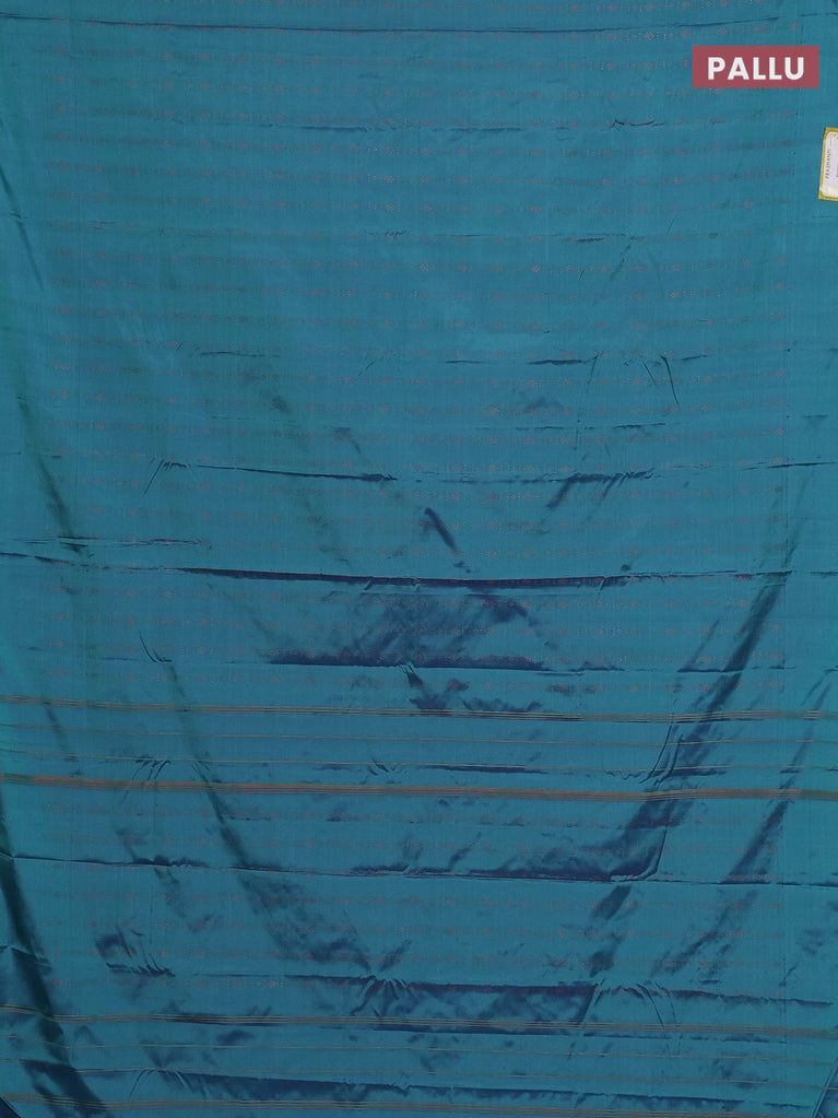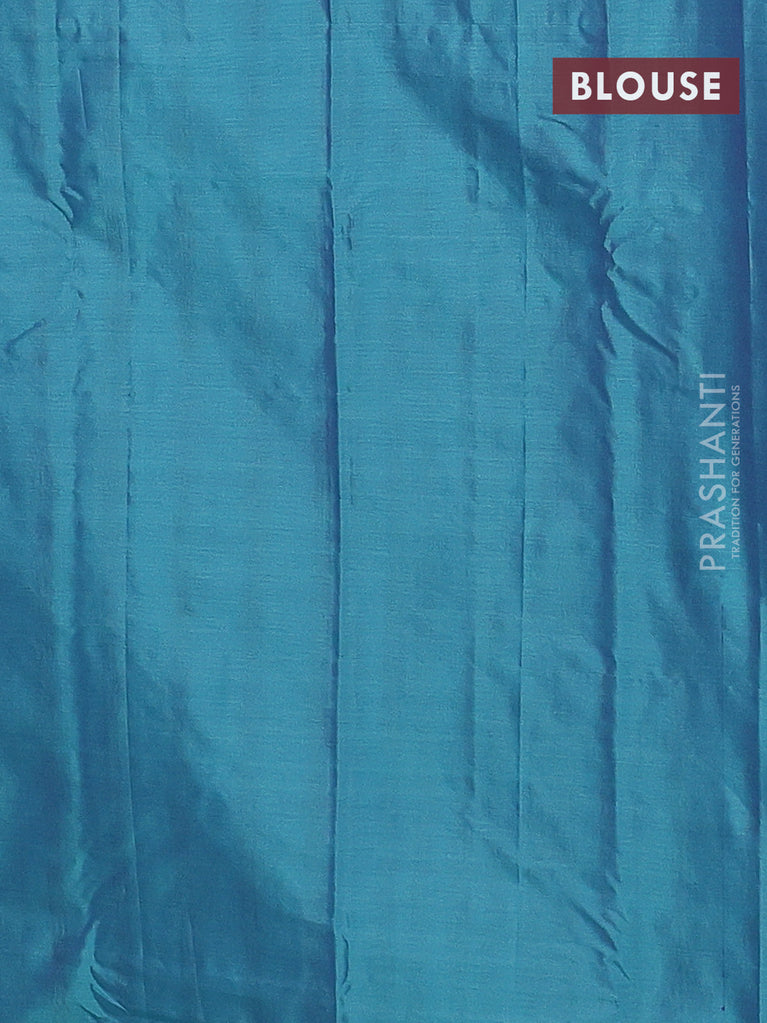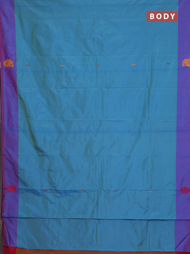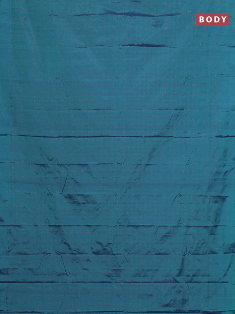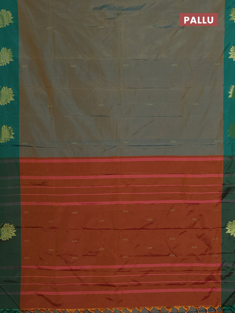 Arani semi silk saree dual shade of teal green with zari woven thilak buttas and zari woven border
