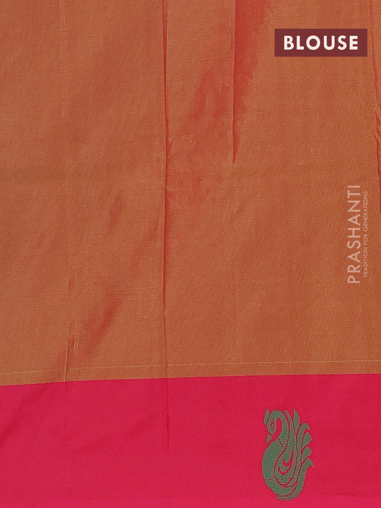 Arani semi silk saree dual shade of pinkish mustard and green with zari woven buttas and zari woven butta border