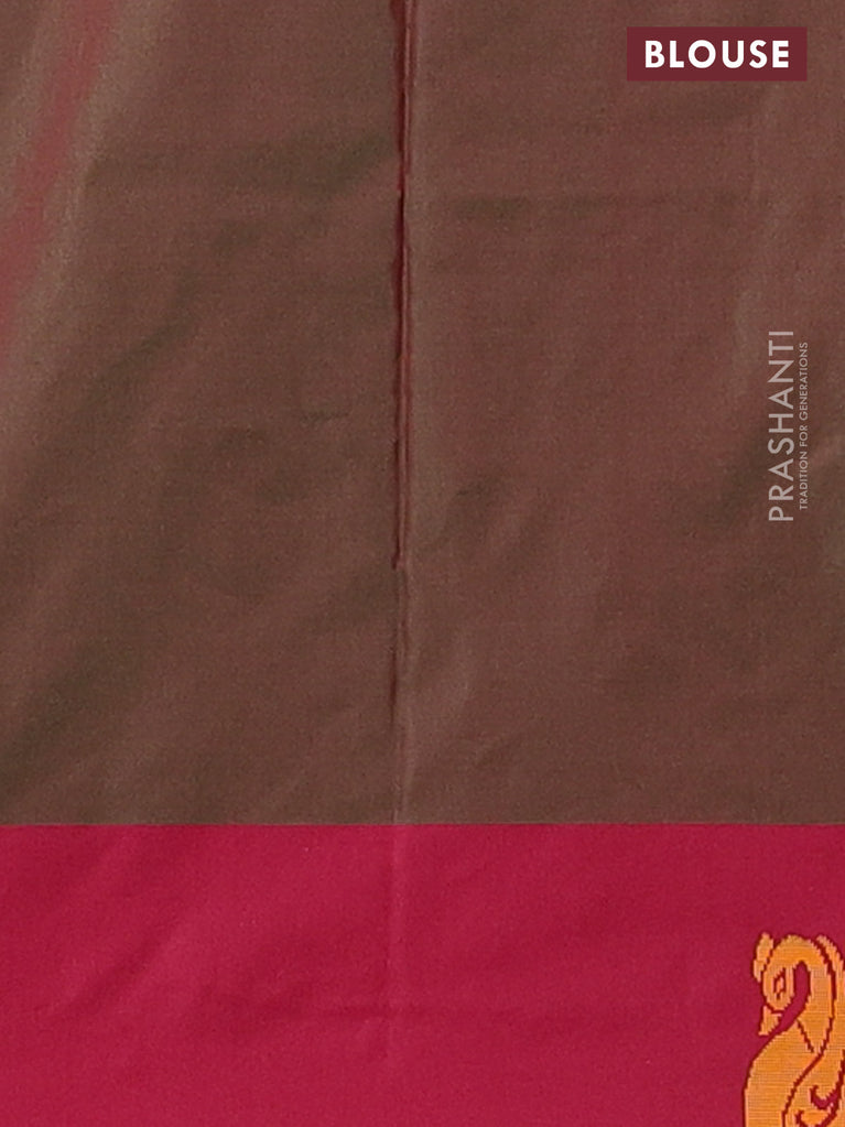Arani semi silk saree dual shade of sandal with allover copper zari weaves in borderless style