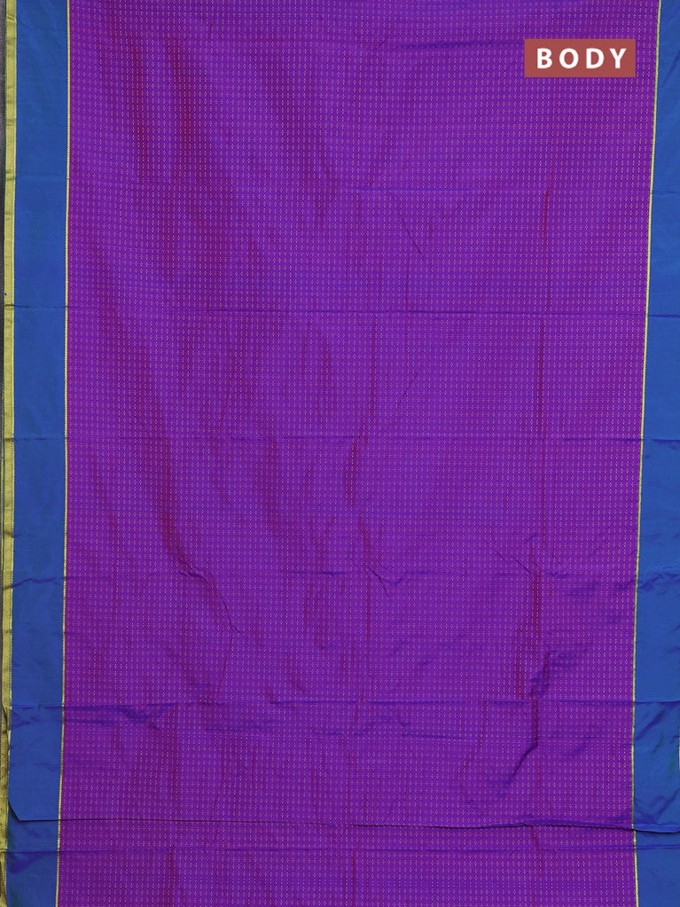 Arani semi silk saree dual shade of purple and red with allover thread weaves and rettapet zari woven border`