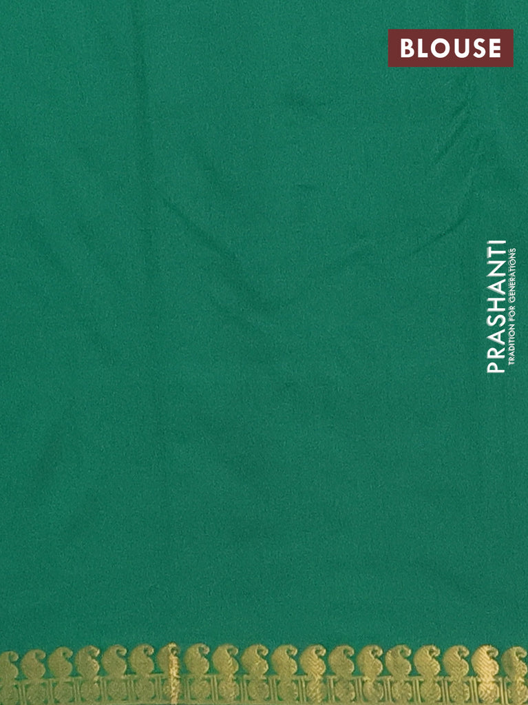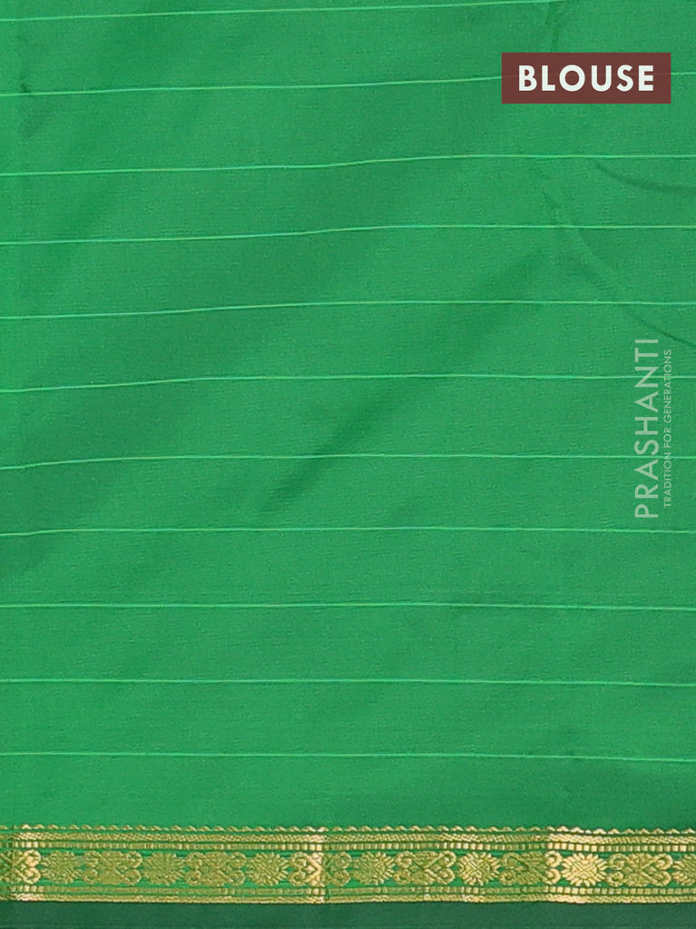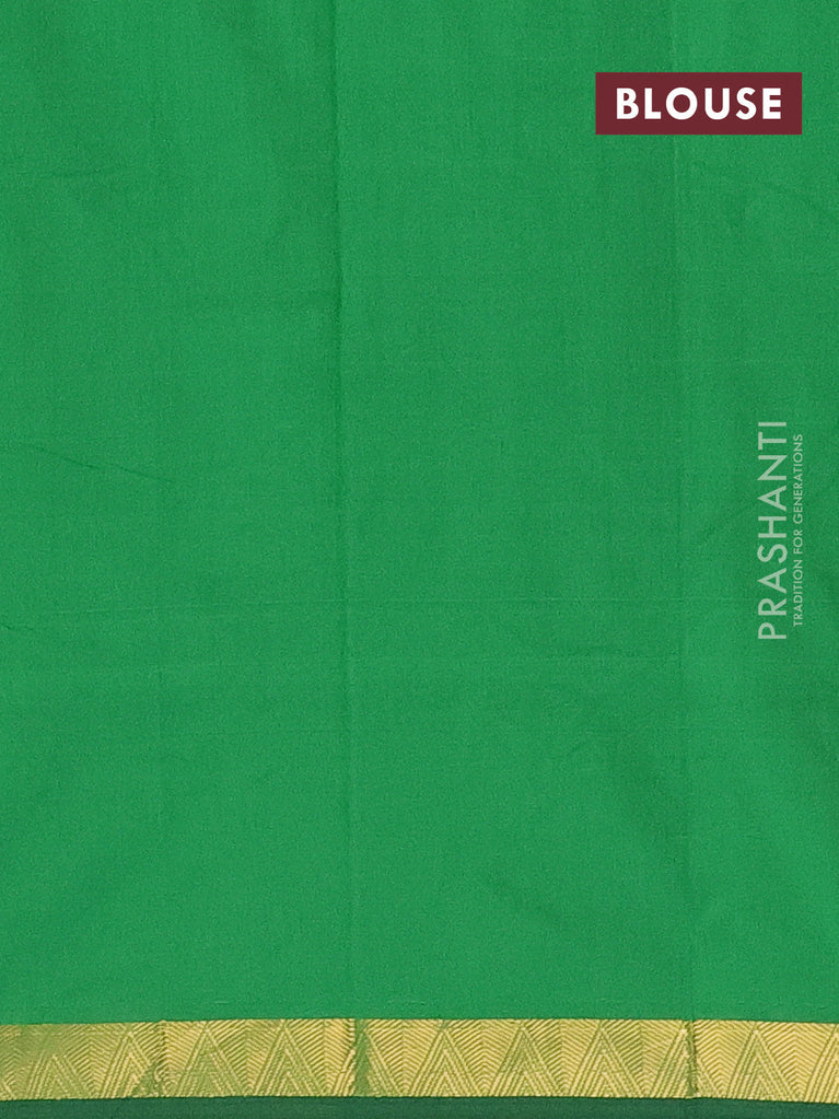 Arani semi silk saree green with allover silver zari weaves in borderless style