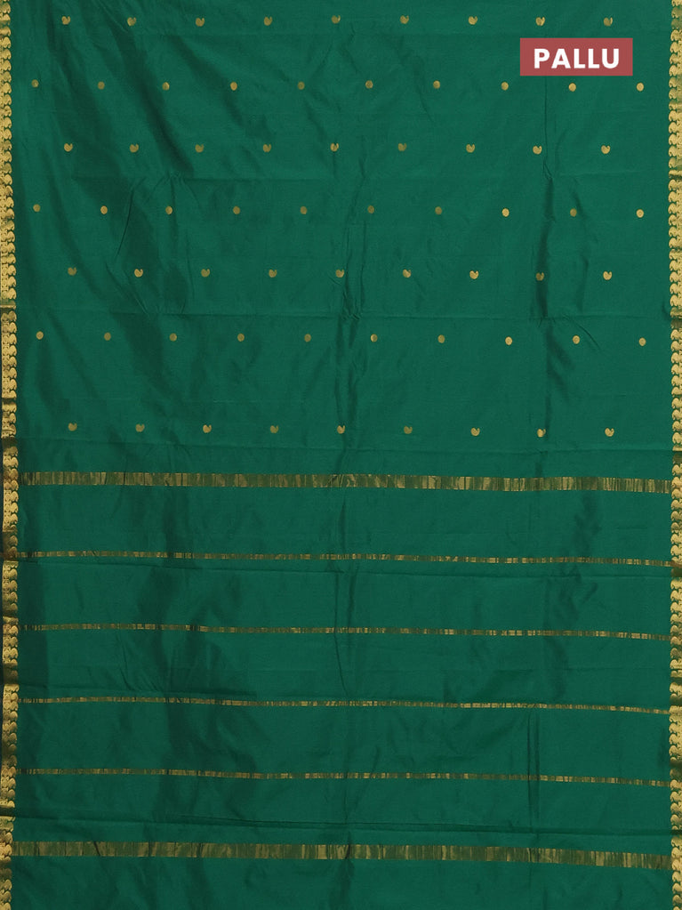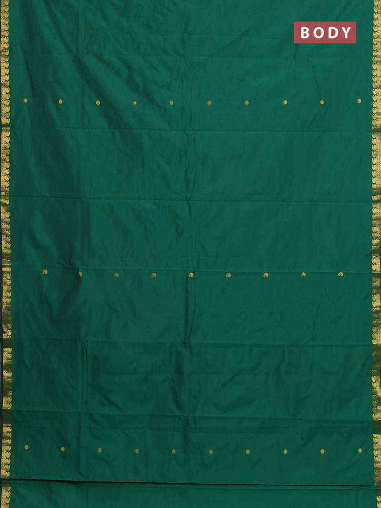 Arani semi silk saree green with copper zari woven buttas in borderless style