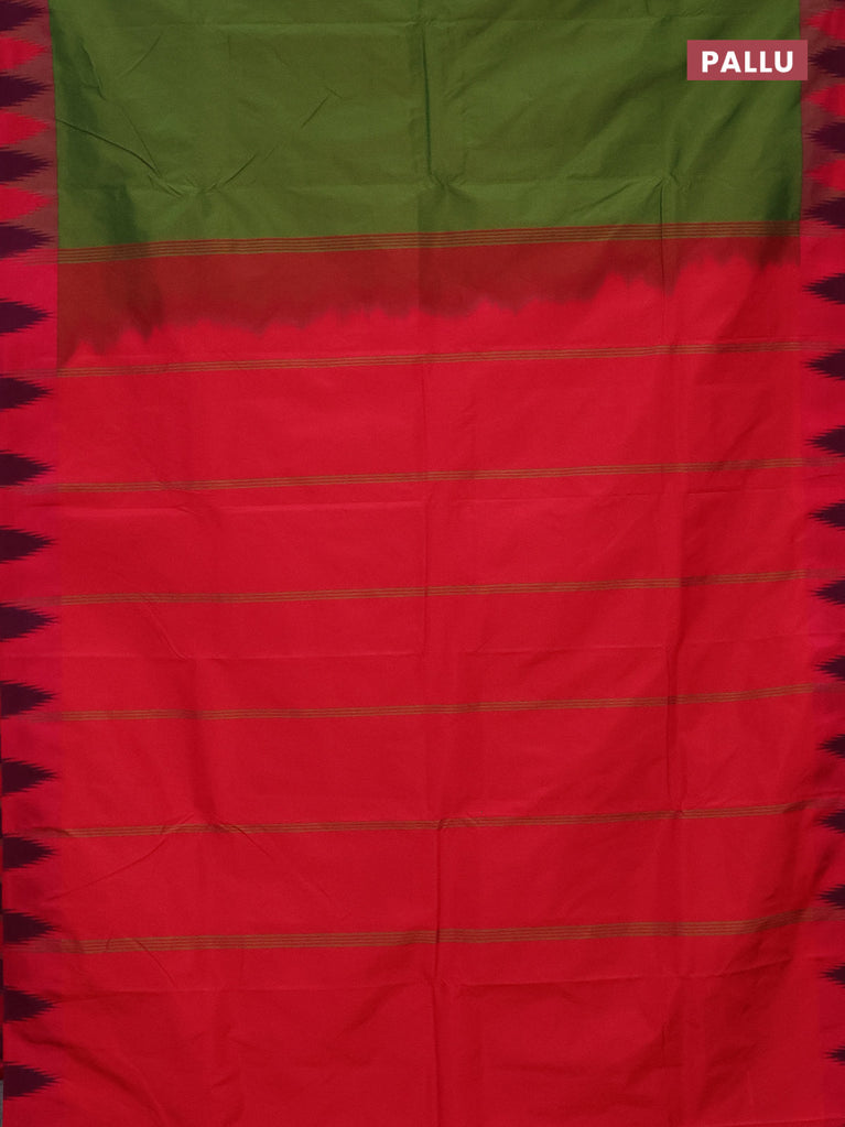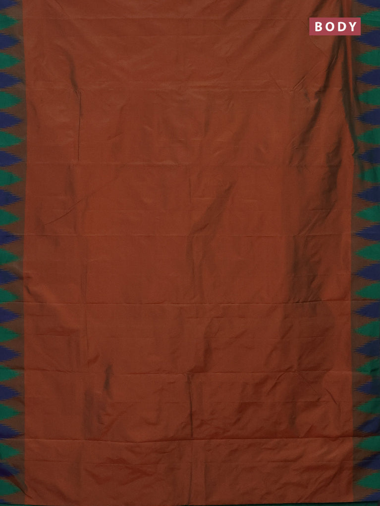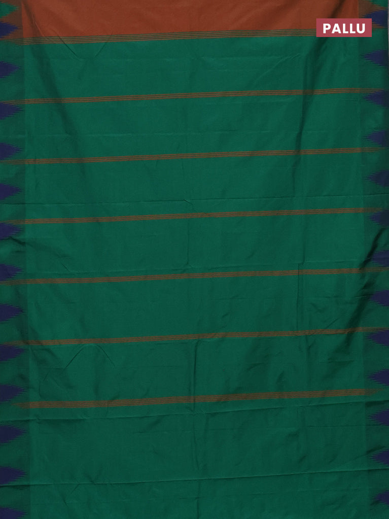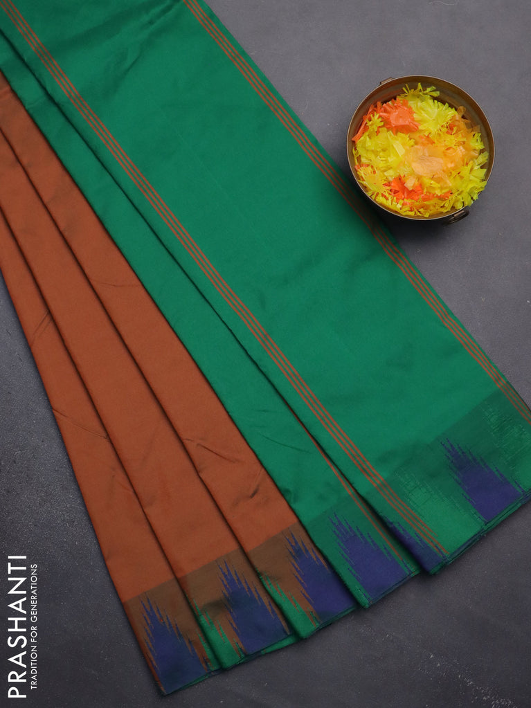 Arani semi silk saree rust shade and green with plain body and temple design border