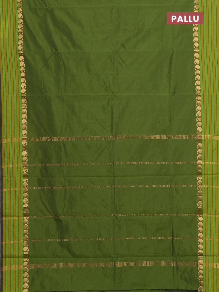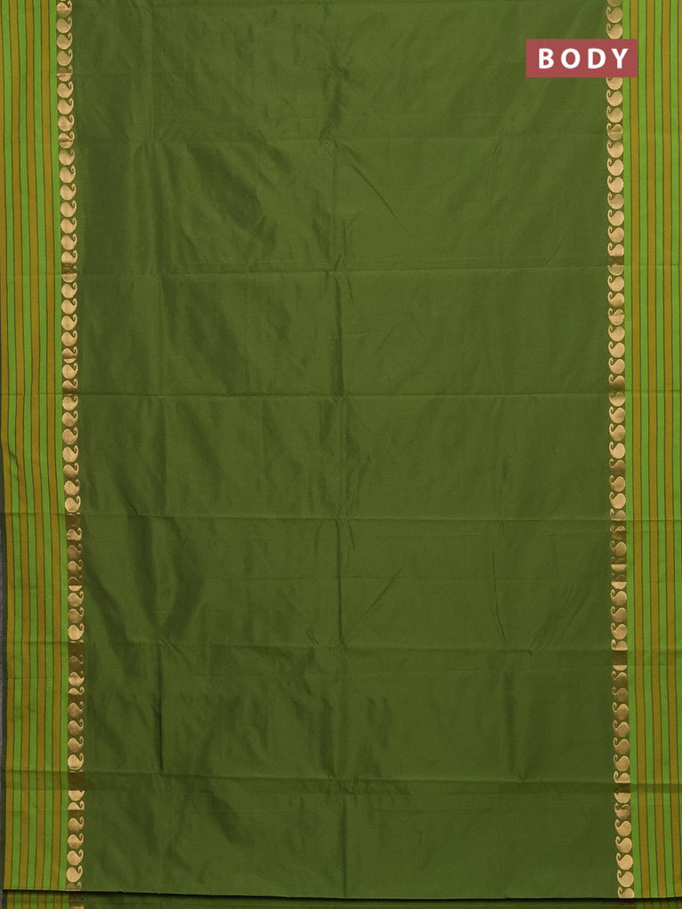Arani semi silk saree sap green and dark mustard with plain body and zari woven simple border