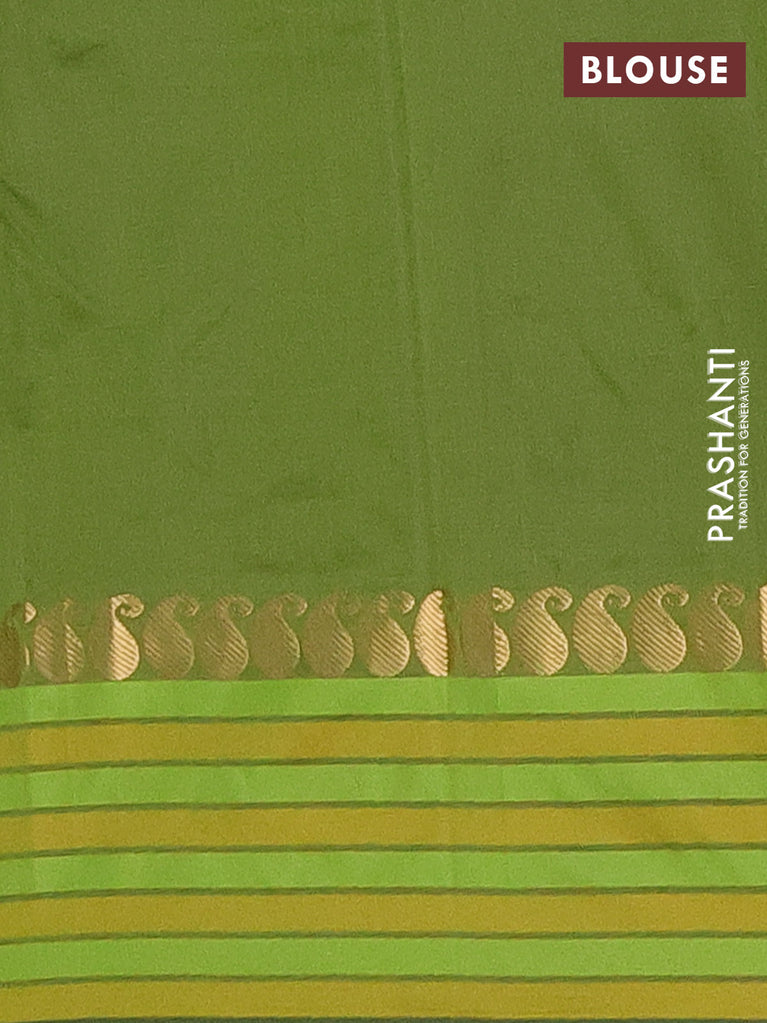 Arani semi silk saree sap green and mustard yellow with plain body and paisley zari woven simple border