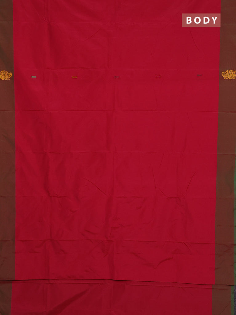 Arani semi silk saree sap green and dual shade of maroon with thread woven buttas and thread woven butta border