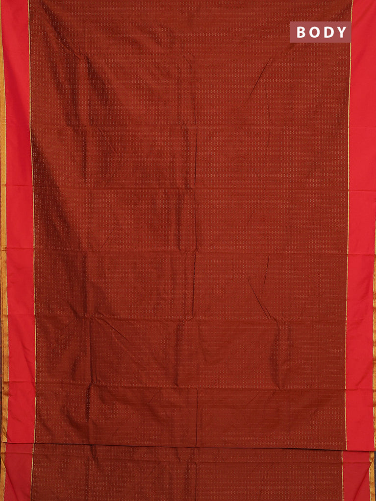 Arani semi silk saree rustic brown with allover silver zari weaves in borderless style